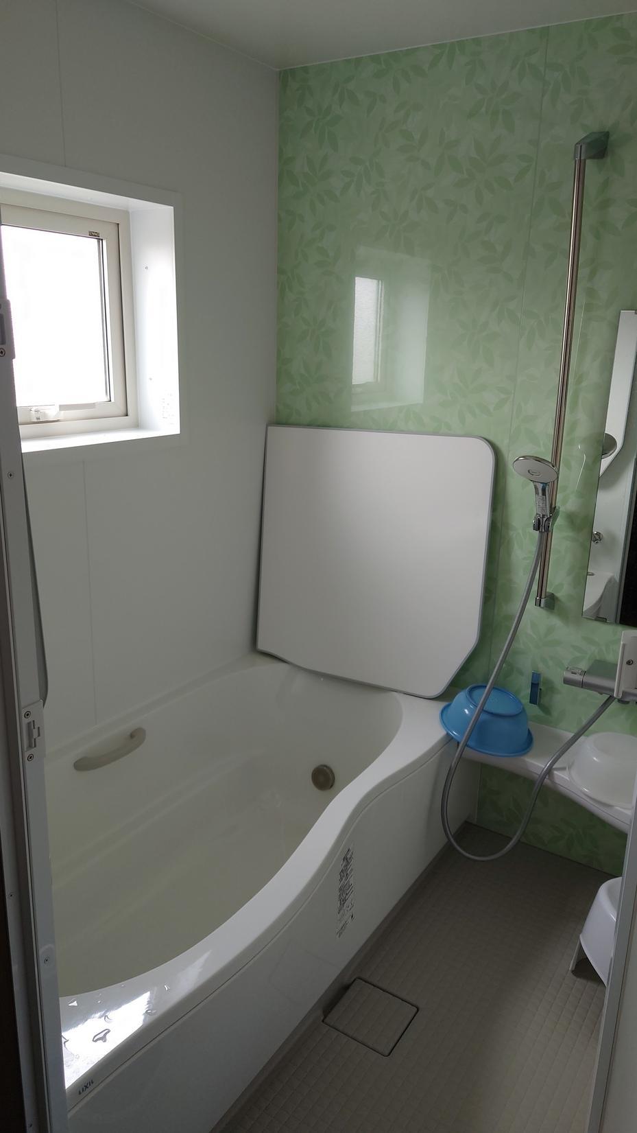 断熱改修も含めてユニットバスを取り替えました。 脱衣スペースも内装工事をして明るく変わりました。