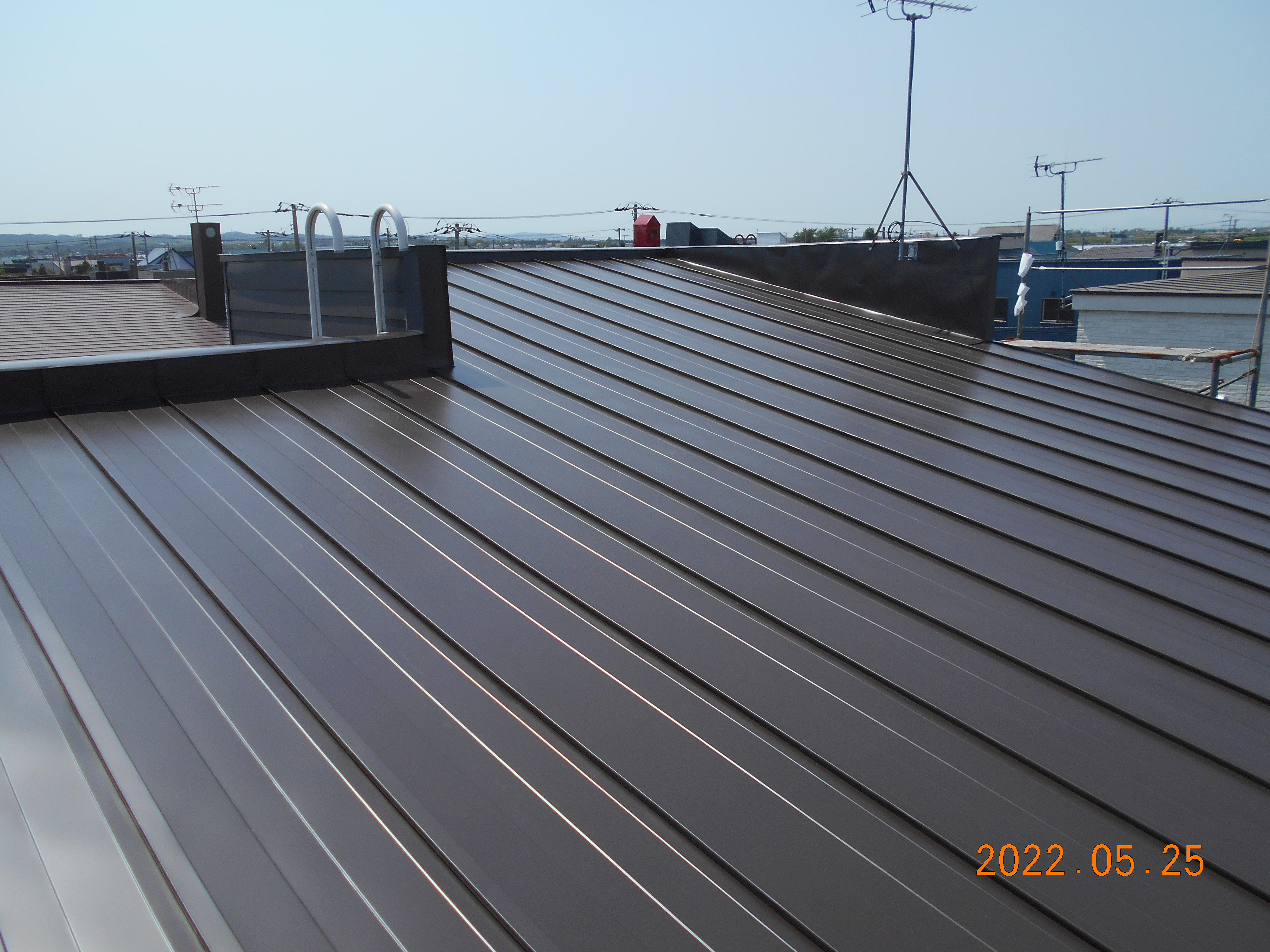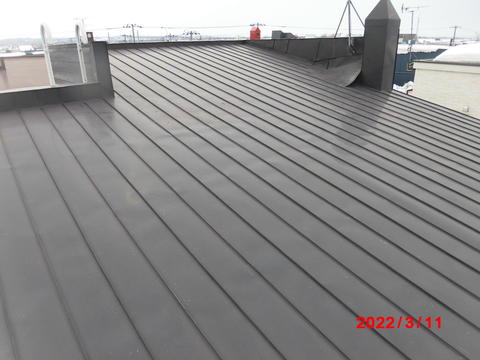煙突に、雪が引っ掛かり巣が漏れしていた為 煙突撤去して、屋根を葺き替えました。 これで、冬も安心ですね。