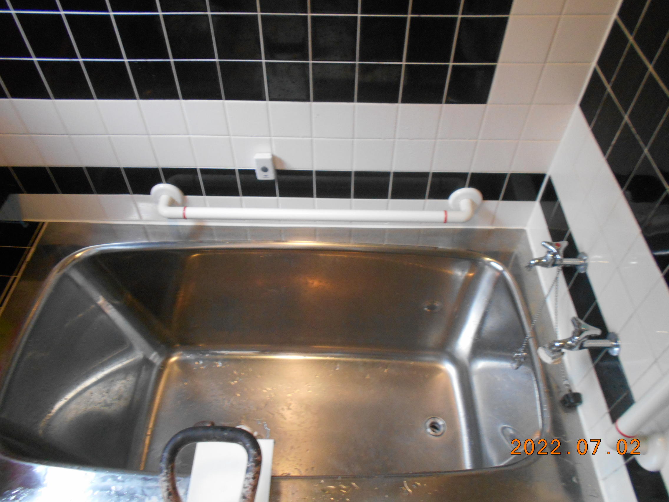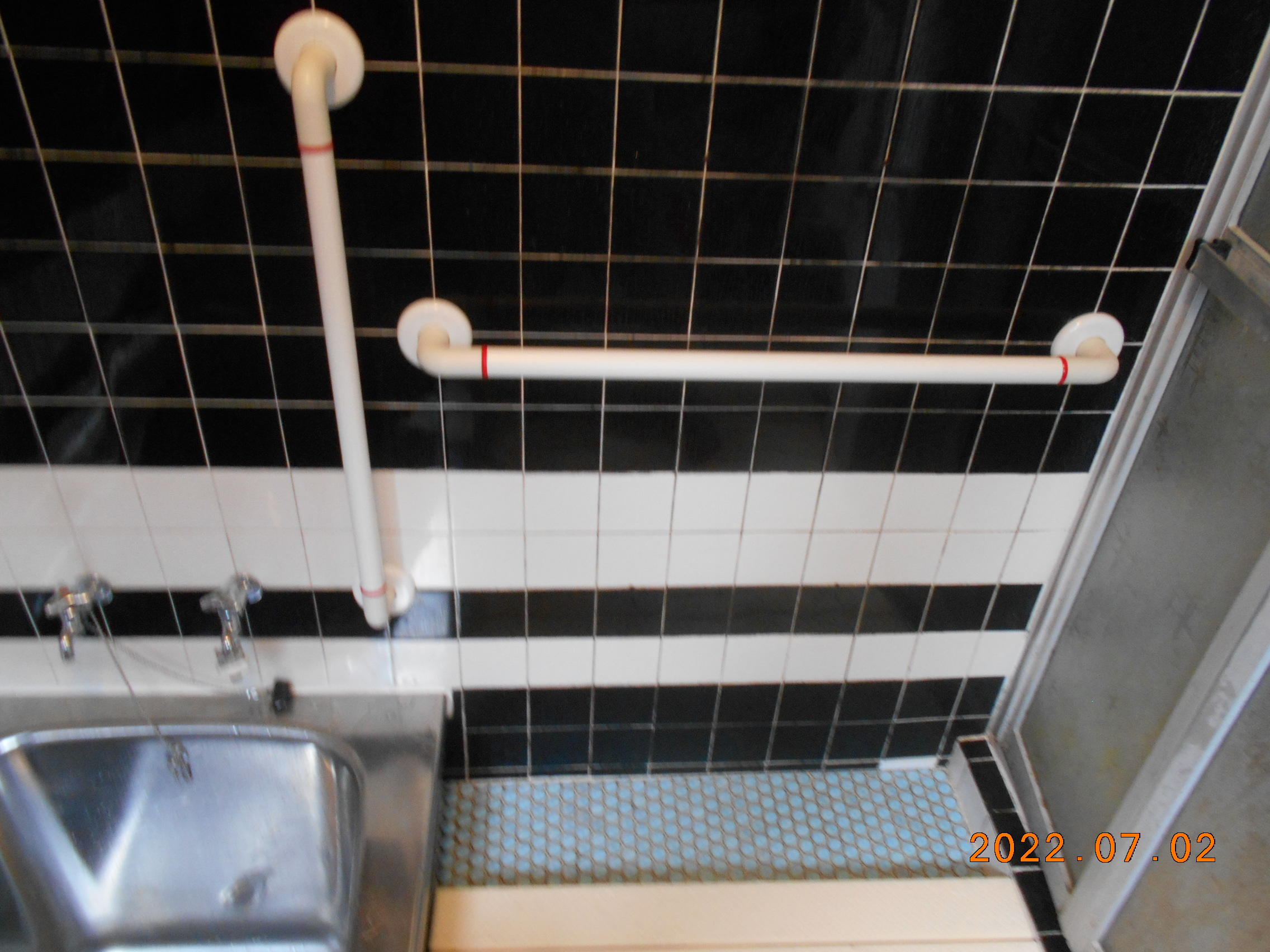 介護保険を利用して、浴室に手摺を付けました。 これで、浴槽への出入りも安全で楽になりますね。