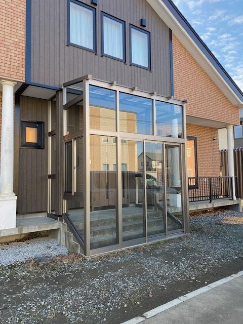 デザイン性にも優れたLIXIL製風除戸ツインガード。 引戸は上吊タイプのため敷居レールが無く、つまづきや凍結の不安もありません。