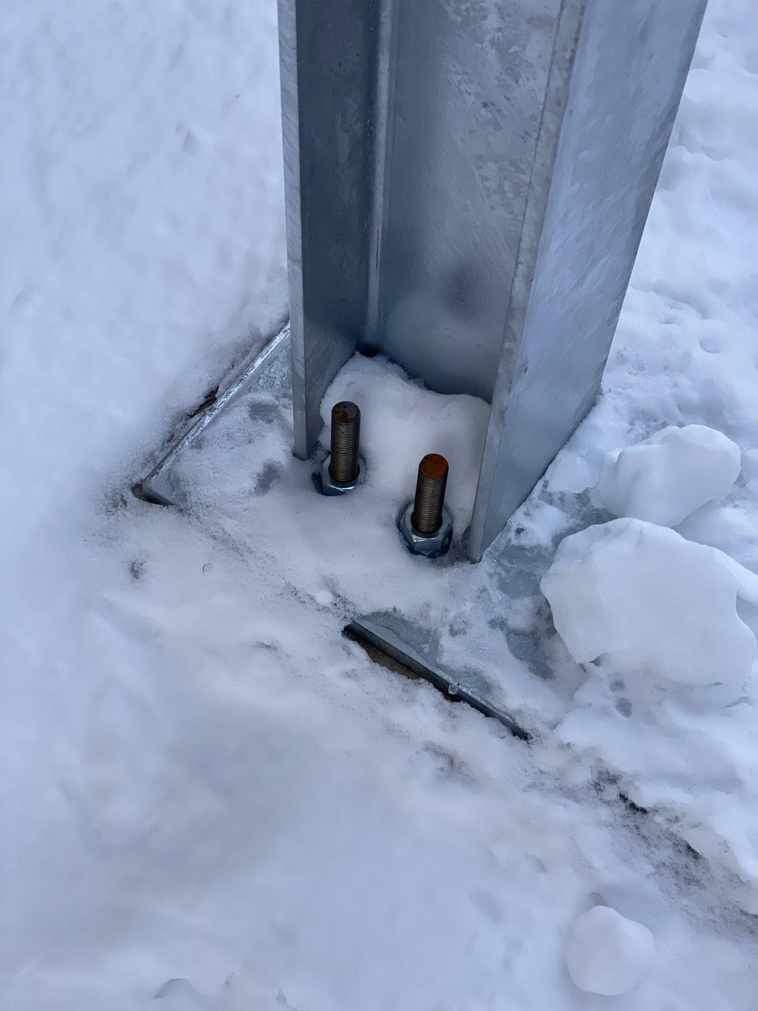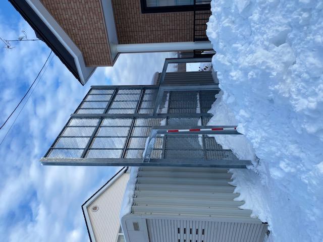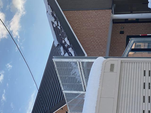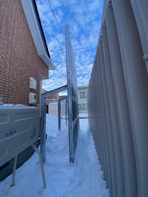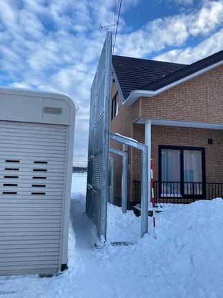 流れ屋根に取付てあった雪止め金物により春先は特にスガ漏れに悩んでいました。 雪止め金物の影響によるトタンへの錆や腐食の心配もあり、金物を取り外しお隣様に落雪の迷惑をかけないために雪止めフェンスを設置しました。