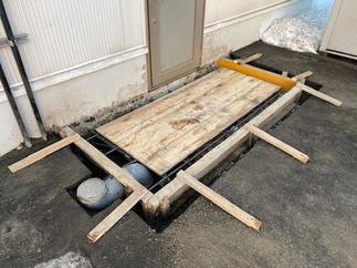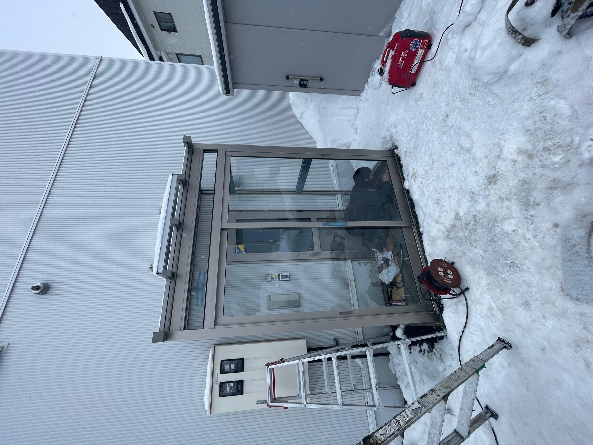 店舗通用口が積雪により開閉しづらくなるため、風除室を設置しました。