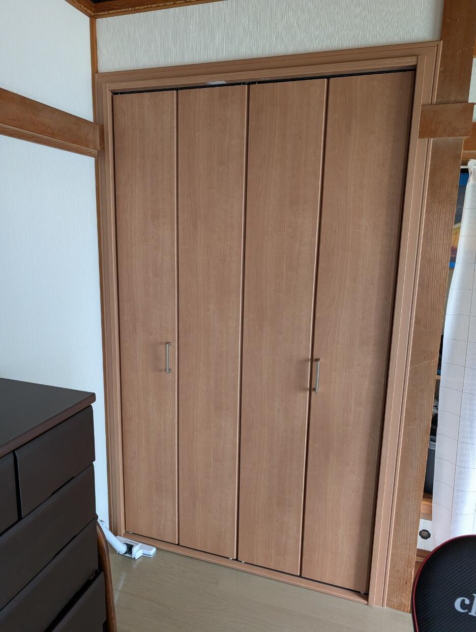 和室の収納建具をクローゼットドアに取替をして内部収納を充実させて使いやすくリフォーム致しました!プレミアム建設券を利用しました。