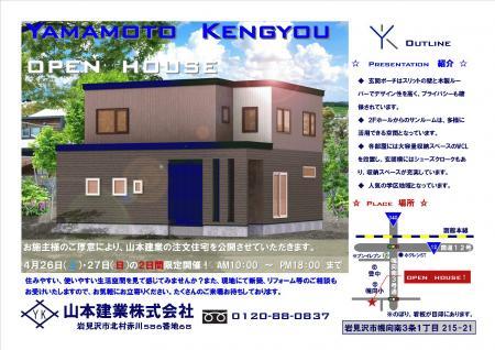 4/26(土)・27(日)の2日間限定!! お施主様のご厚意により、山本建業の注文住宅を公開させていただきます♪ 是非、お気軽にお立寄りください。ご来場お待ちしております。