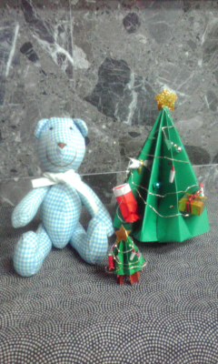 折り紙で出来たツリー...一つ一つの飾りまで丁寧に細かく作っているんですよさっそく事務所に飾りましたS様 ありがとうございました