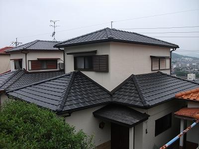 先月から工事していました諫早市小川町の0様邸。屋根瓦取替&外壁塗装工事が完成しました。築30年ほどたち、瓦自体の割れなど劣化が目立つこと、また数年経ったら塗装の必要があることなどから、瓦自体の交換(セメント瓦⇒陶器瓦)をお勧めしたO様邸。樋の交換や玄関ポーチの補修も行い、本当にきれいになりました。その仕上がりにO様も『大満足!』と笑顔を見せていただき、スタッフ一同ホッとしました♪完成からがお付き合いの始まり… これからもよろしくお願いします!