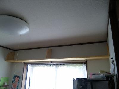 リビングの出窓上の何もなかった所に…一間半(約3m)の棚を作りました♪ 捨てたくない本や、子供に触られたくない書類など、ここにおきたいものはいろいろ…。片づけしやすくなりました♪