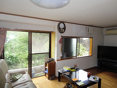 窓はあっても、戸袋で暗かったリビング。ちょっと逆行ですが、これまで、雨戸の戸袋があり、暗かったお宅。少しだけ増築し、中窓から掃出し窓へ取替、リビング全体が明るくなりました。