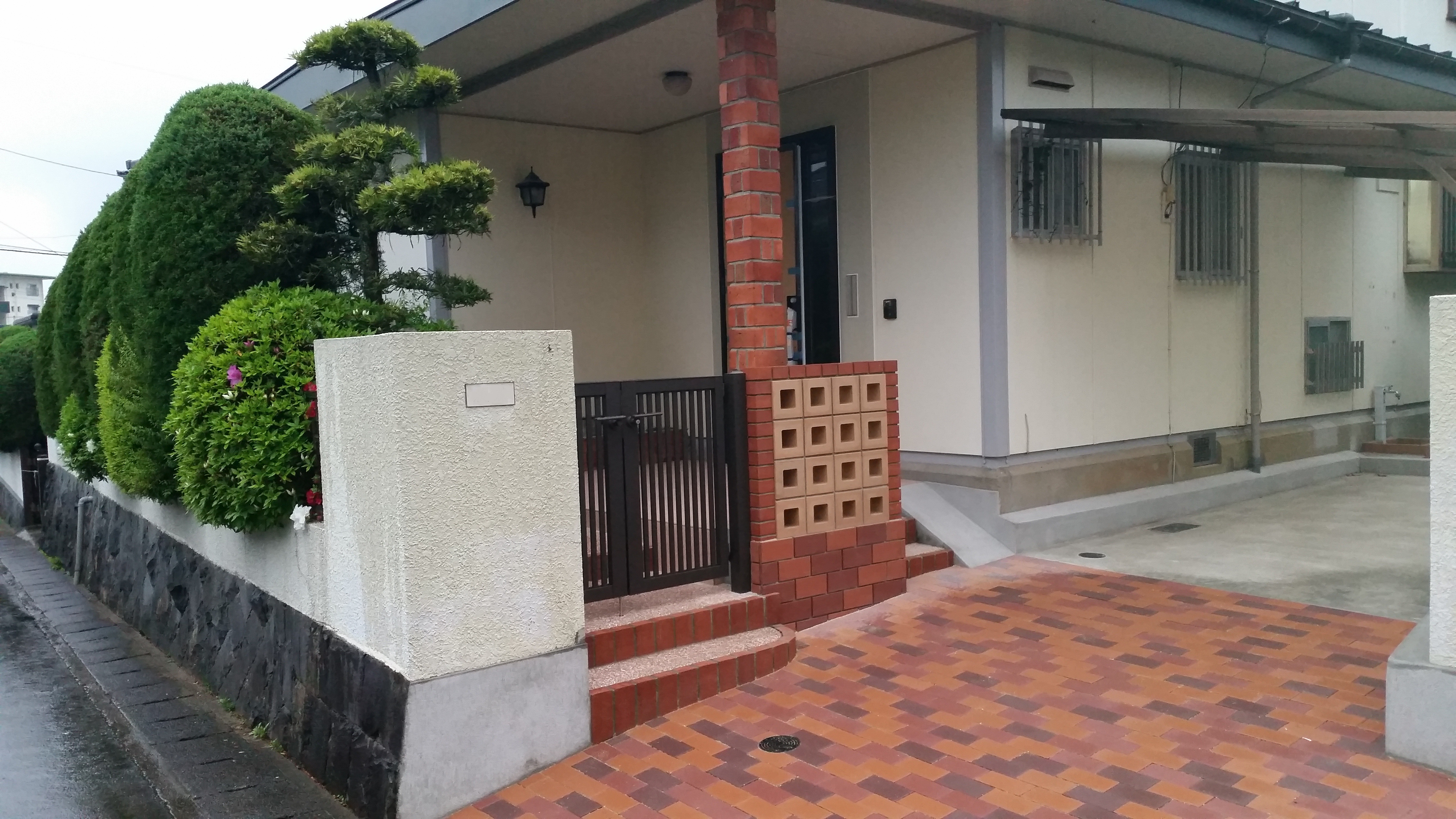 『ようこそ 我が家へ!』 築40年、レンガ造りのポーチ柱を活かして、明るい玄関に生まれ変わりました。