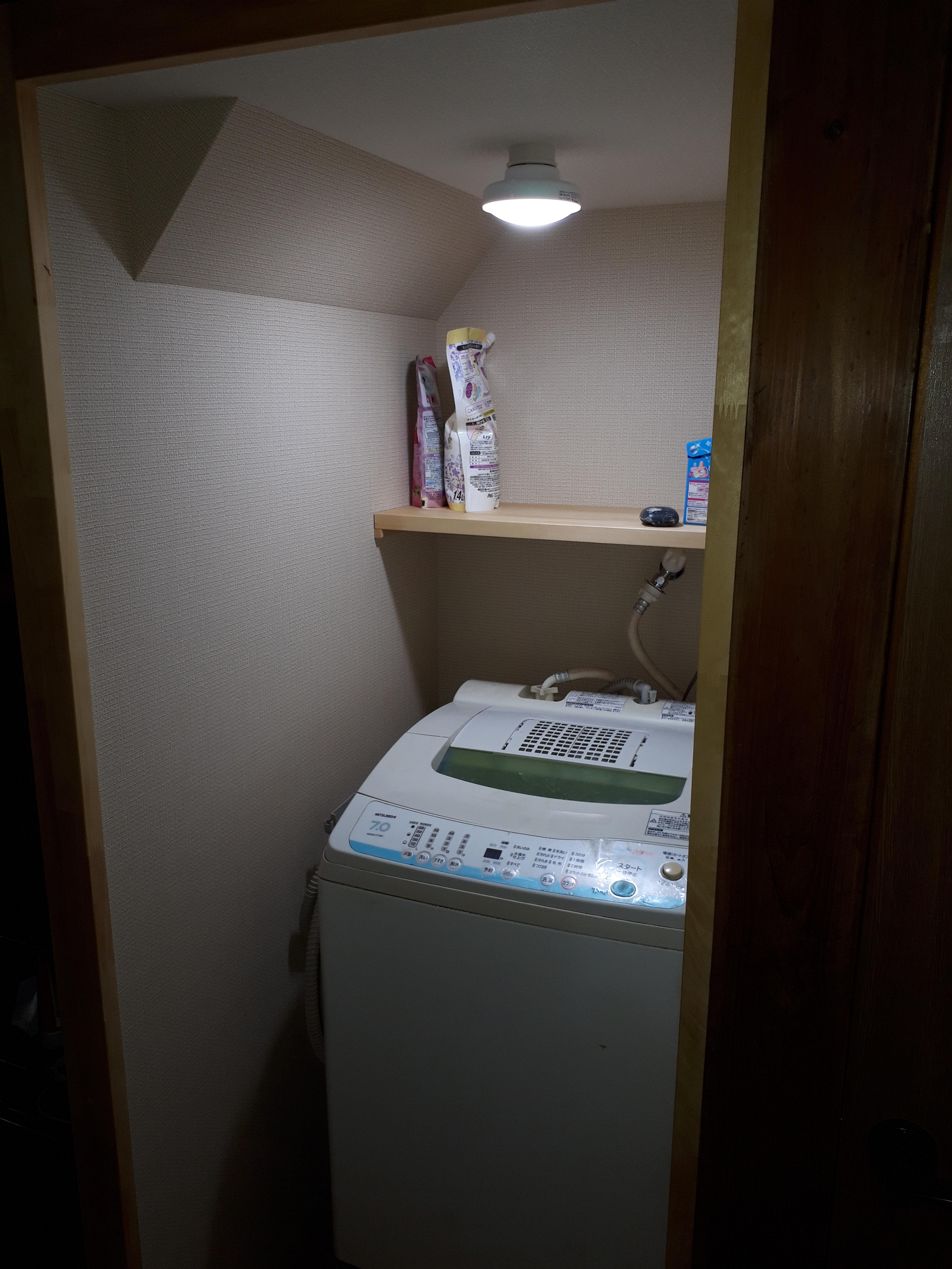 階段下のスペースを使って洗濯機置き場に変更しました。洗面所がすっきりし、お風呂も広くなりお客様も大喜びして頂けました。