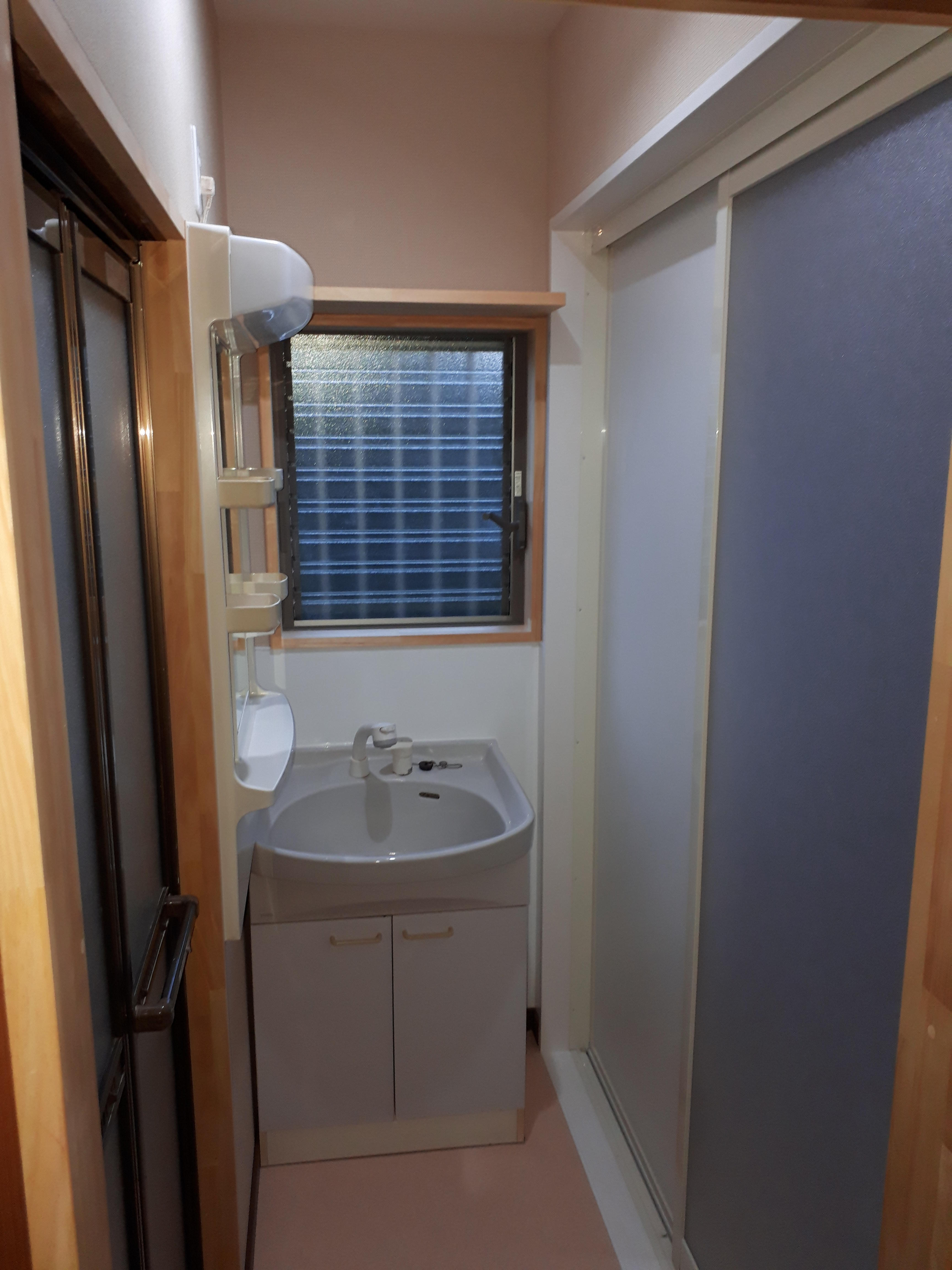 狭くて使いにくかった脱衣室を改修しました。洗面台と洗濯機を分けました。