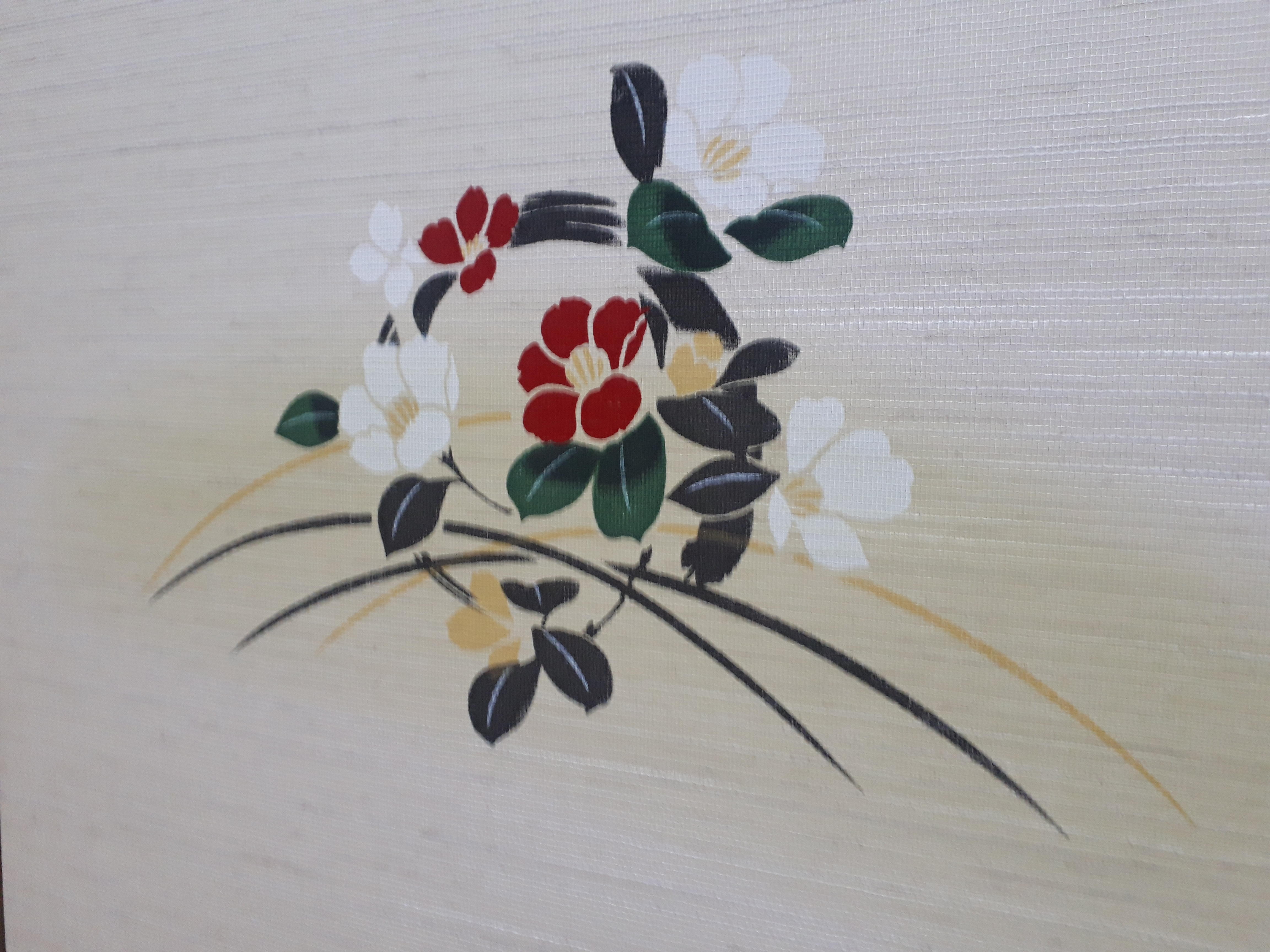 古くなった襖と障子の張替え。元々牡丹柄だった襖を椿柄へリフォーム。奥様が大好きなお花柄でキラキラリフォーム(^o^)