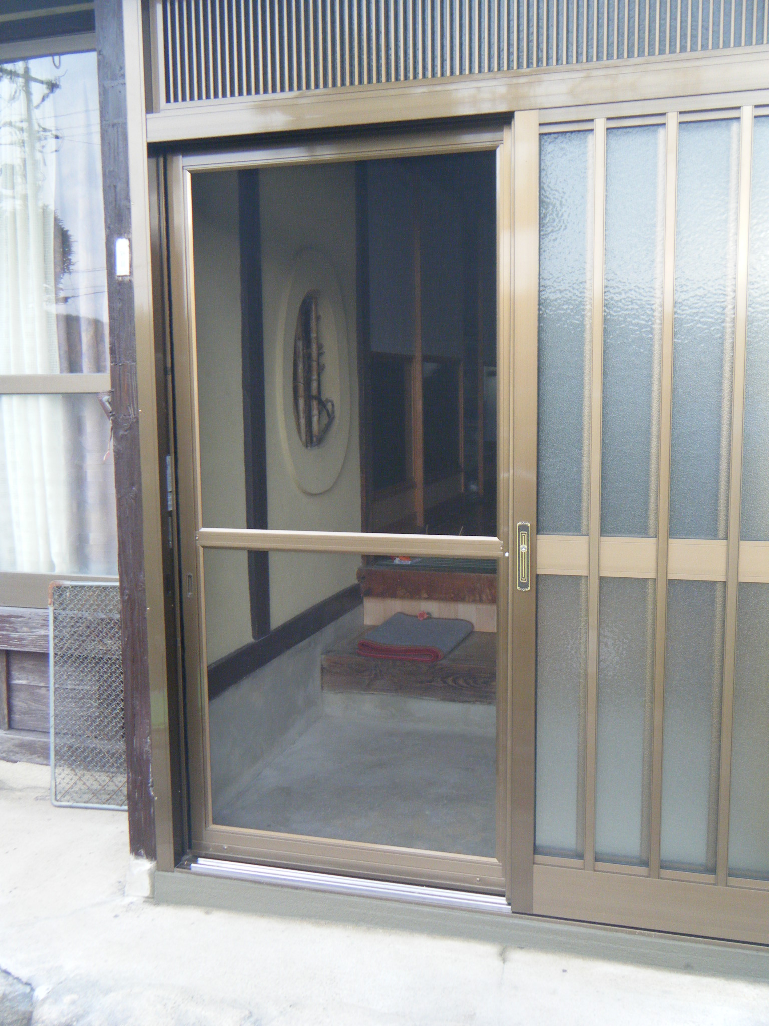 アルミ建具を、アルミ玄関サッシに取替ました。