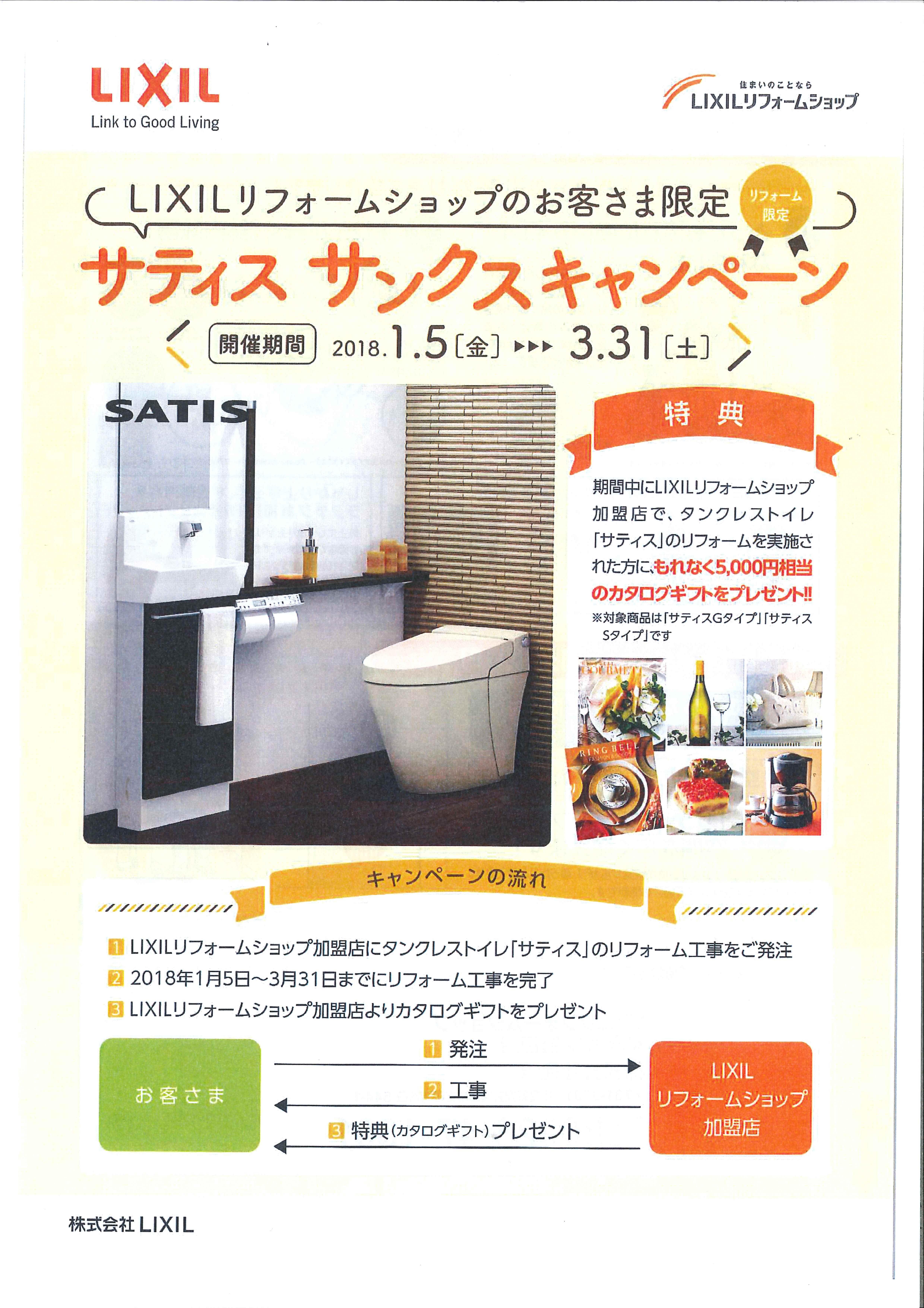 対象商品「サティスGタイプ」「サティスSタイプ」を利用したリフォーム工事を実施していただいた方に、
