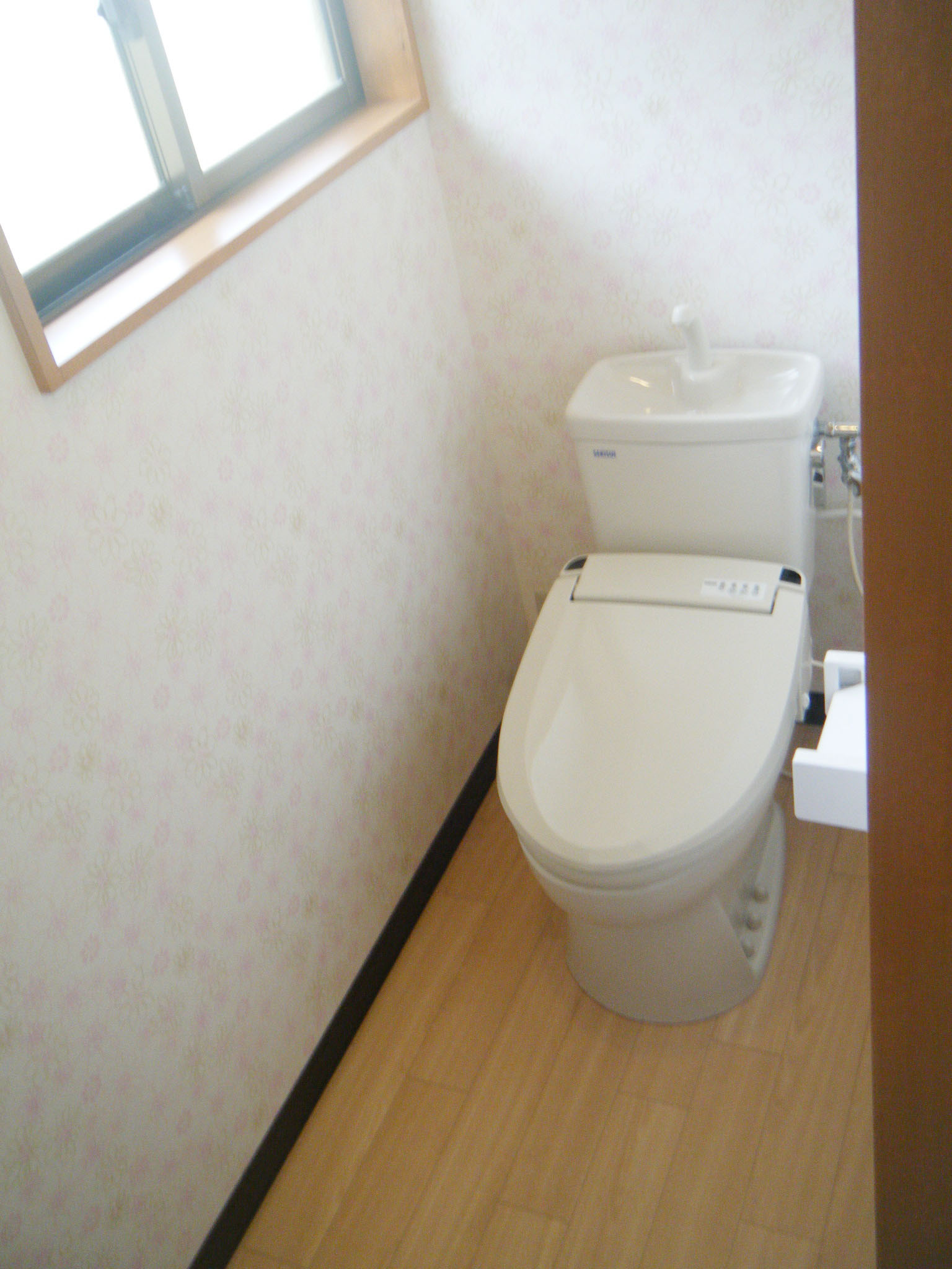 別々だった大便器と小便器を間の壁を取り外しひとつにしたことで、空間を広く使えるようになりました。また、手洗器も取替えました。