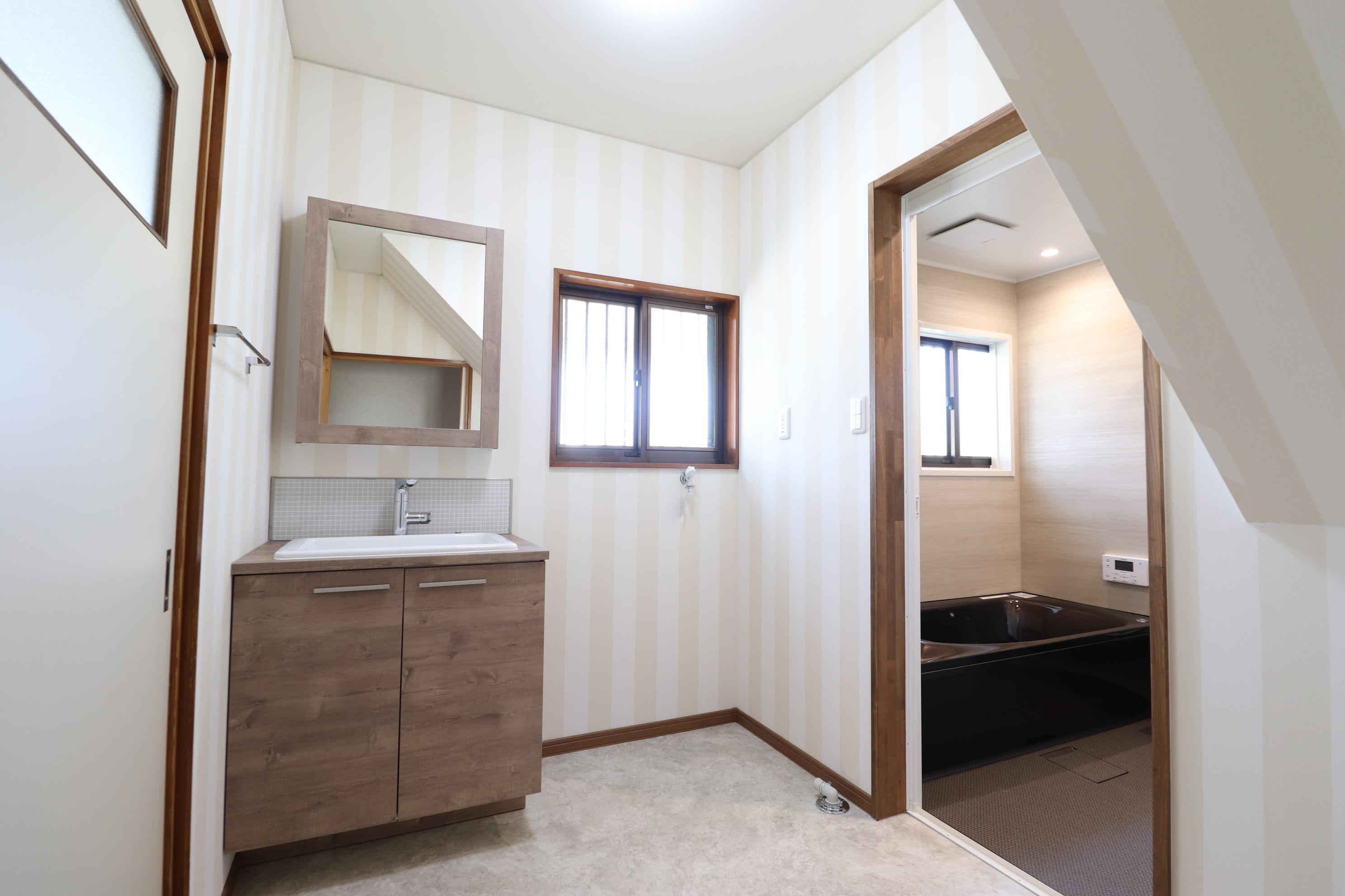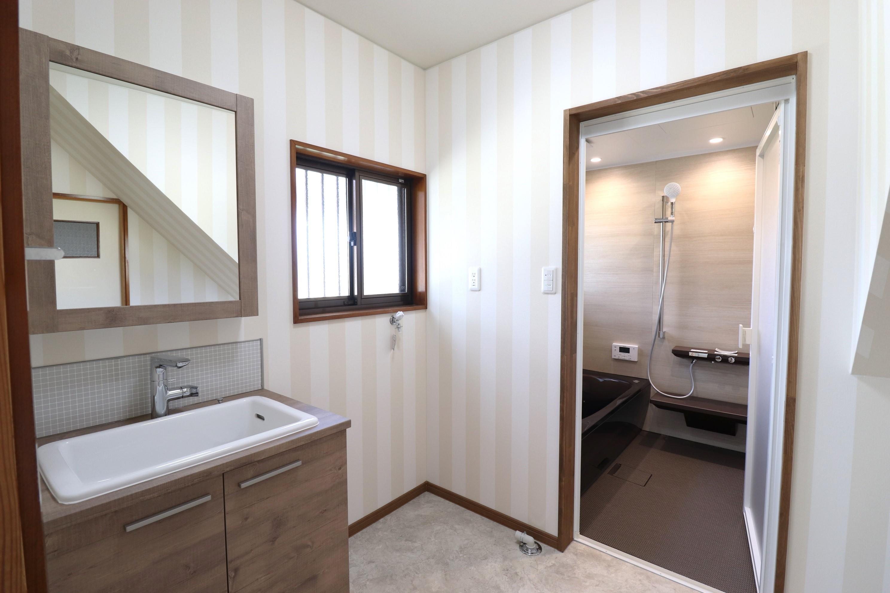中古住宅を購入し、水回りをリフォームされたI様。 洗面化粧室は洗面台とクロスを変え、温かみのあるナチュラルな空間になりました。 浴室は、疲れを癒し、心休まる場所にしたいというご希望から 肩湯・腰湯機能がついた快適なバスルームに生まれ変わりました。