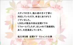 先日、リシェント工事をされたお客様よりうれしいお言葉をいただきました。