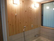 軽井沢別荘 お風呂を造り替えました。壁は桧の板張りで森林浴。