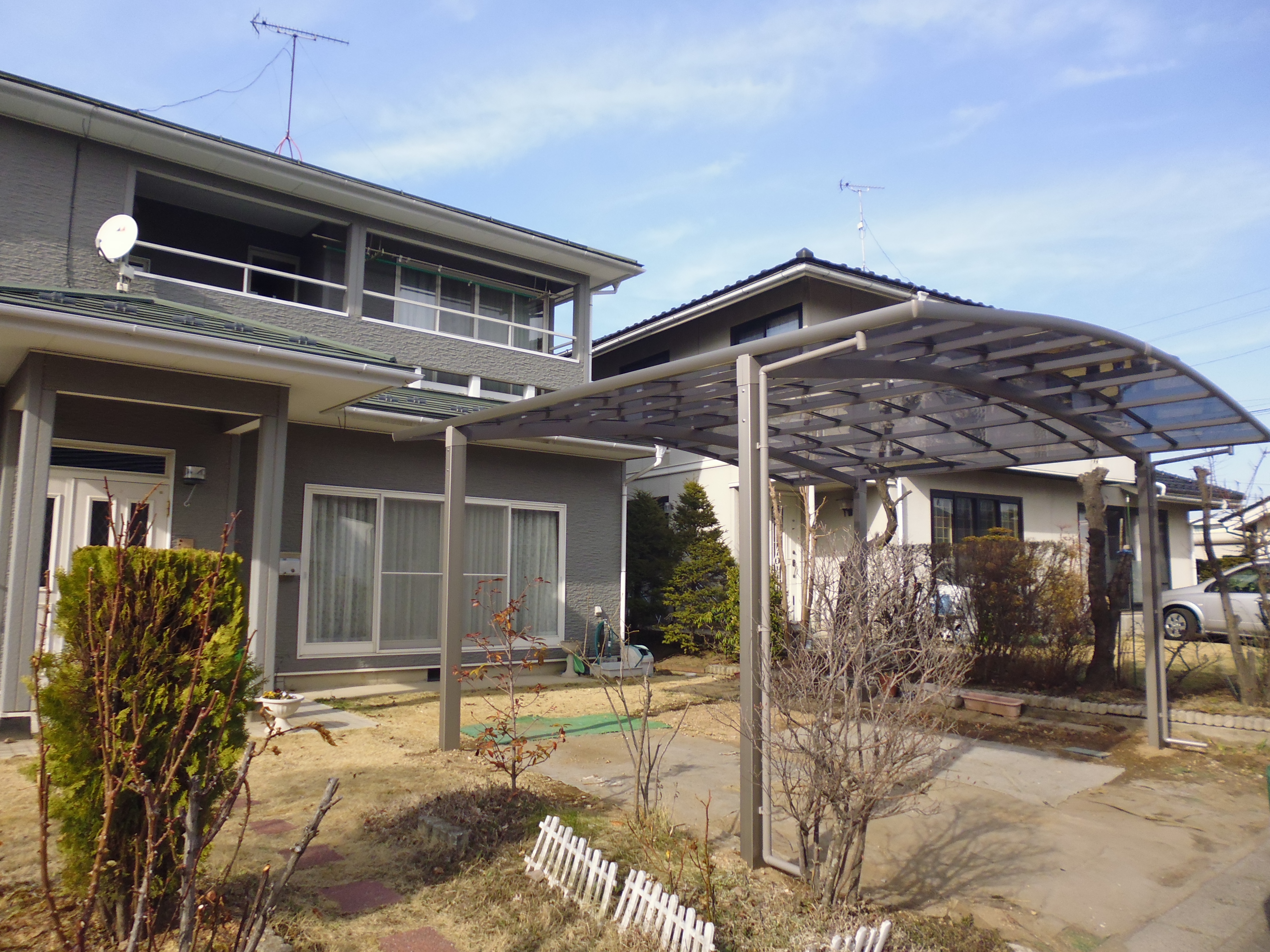 雪をおろさないでいたら、こんなになってしまいました。今度は、積雪を考えてカーポート選びました。