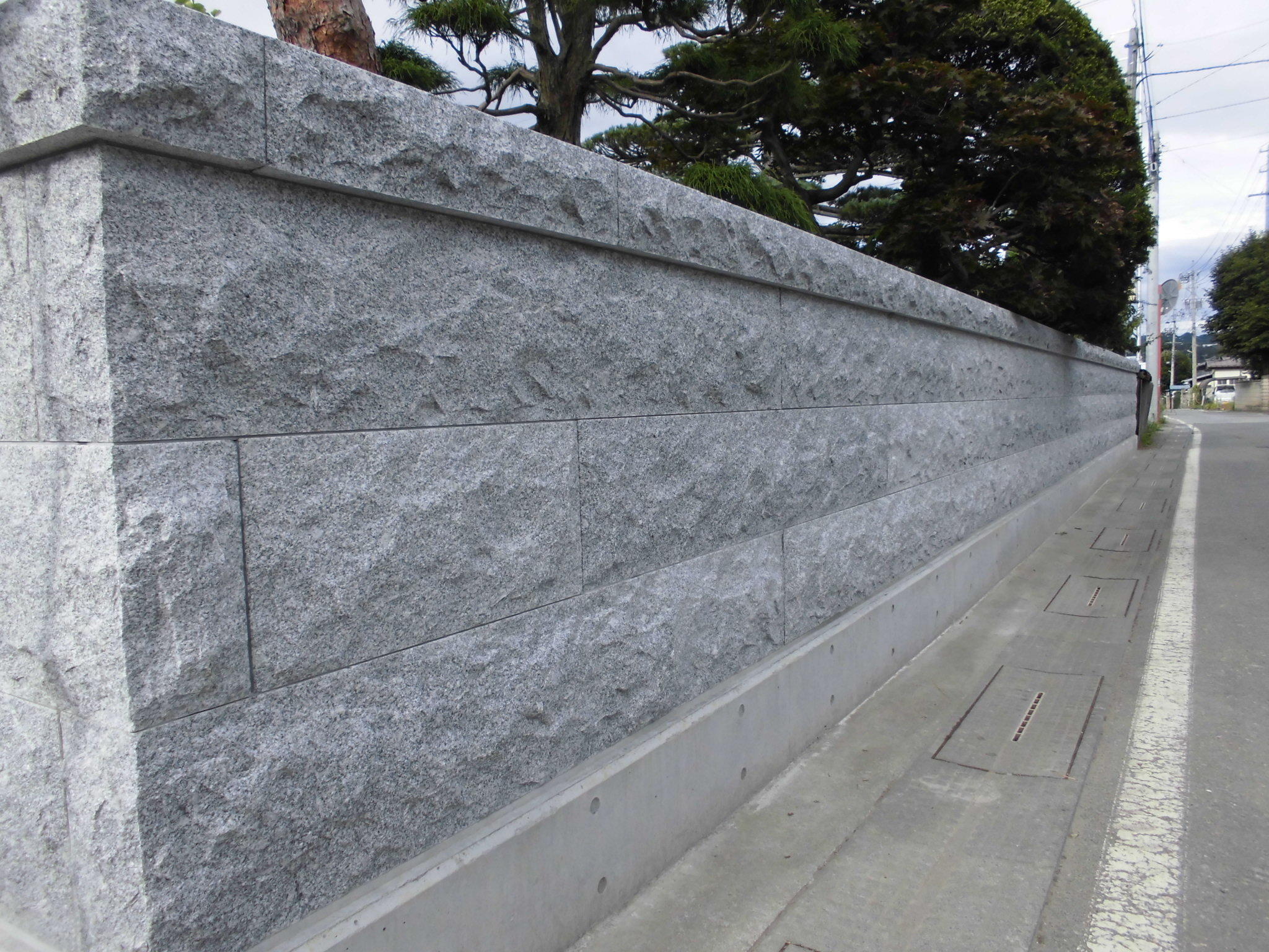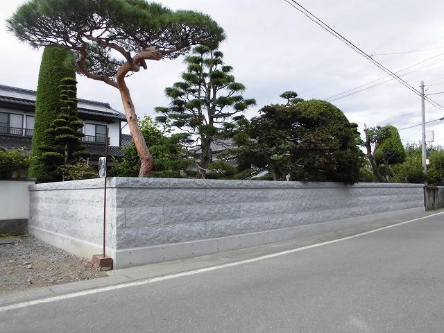 ブロック塀を解体して、石塀を造らせていただきました。桧造りの住宅も当社で施工をさせていただき、今回はその住宅にマッチした石塀となり、とても素敵になりました。 駐車場の舗装工事のご依頼もいただきました。