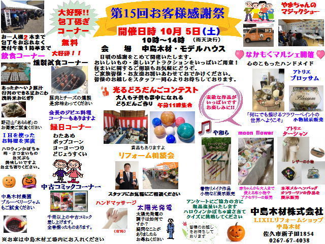 日頃の感謝をこめて、お客様感謝祭を開催いたします。