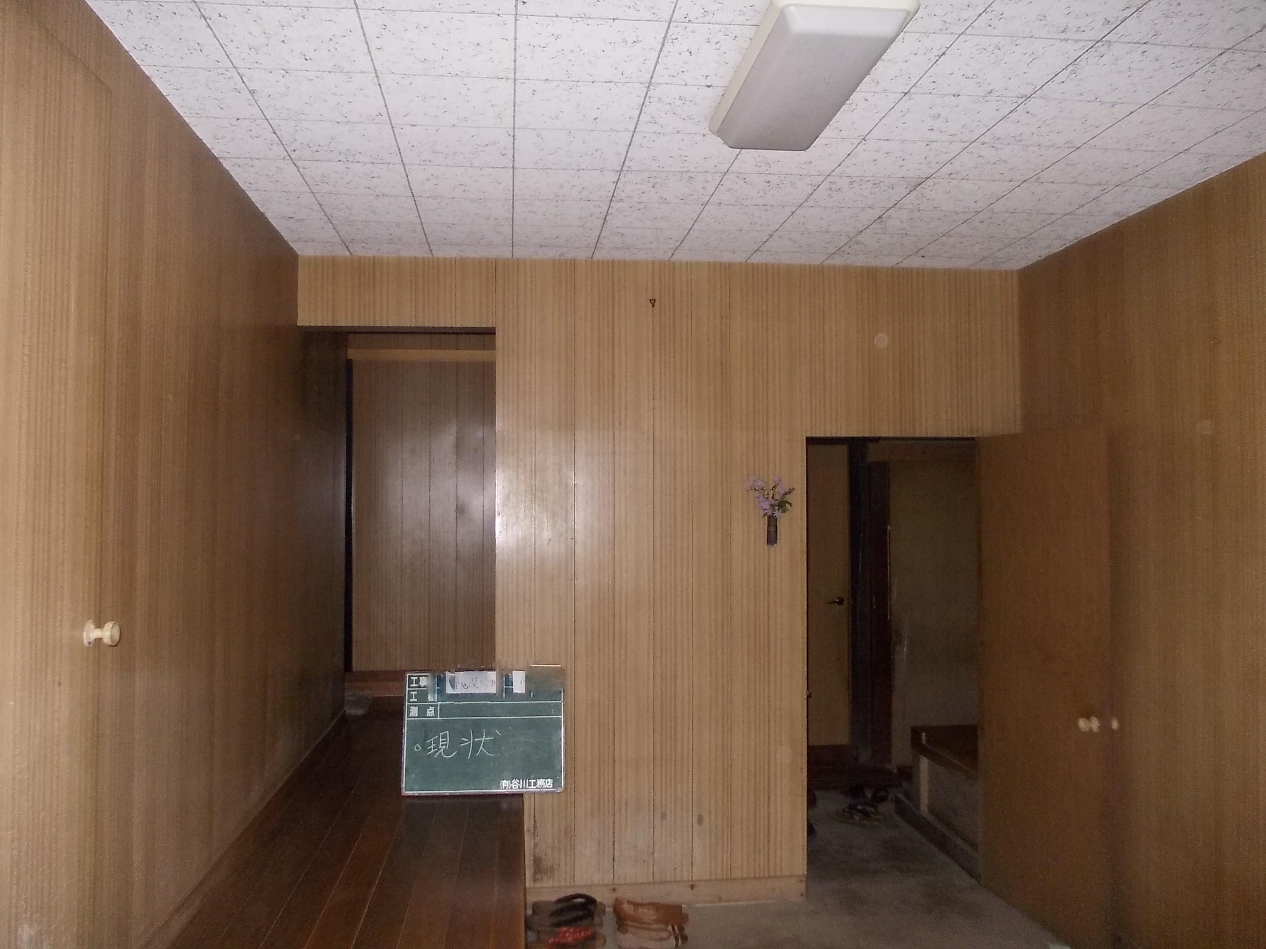天井が低く、暗かった玄関ホール!!!隠れていた梁(はり)を見せた事で天井が高くなり、不満に思っていた天井の高さと暗さが解消出来、開放感のある玄関ホールになりました。