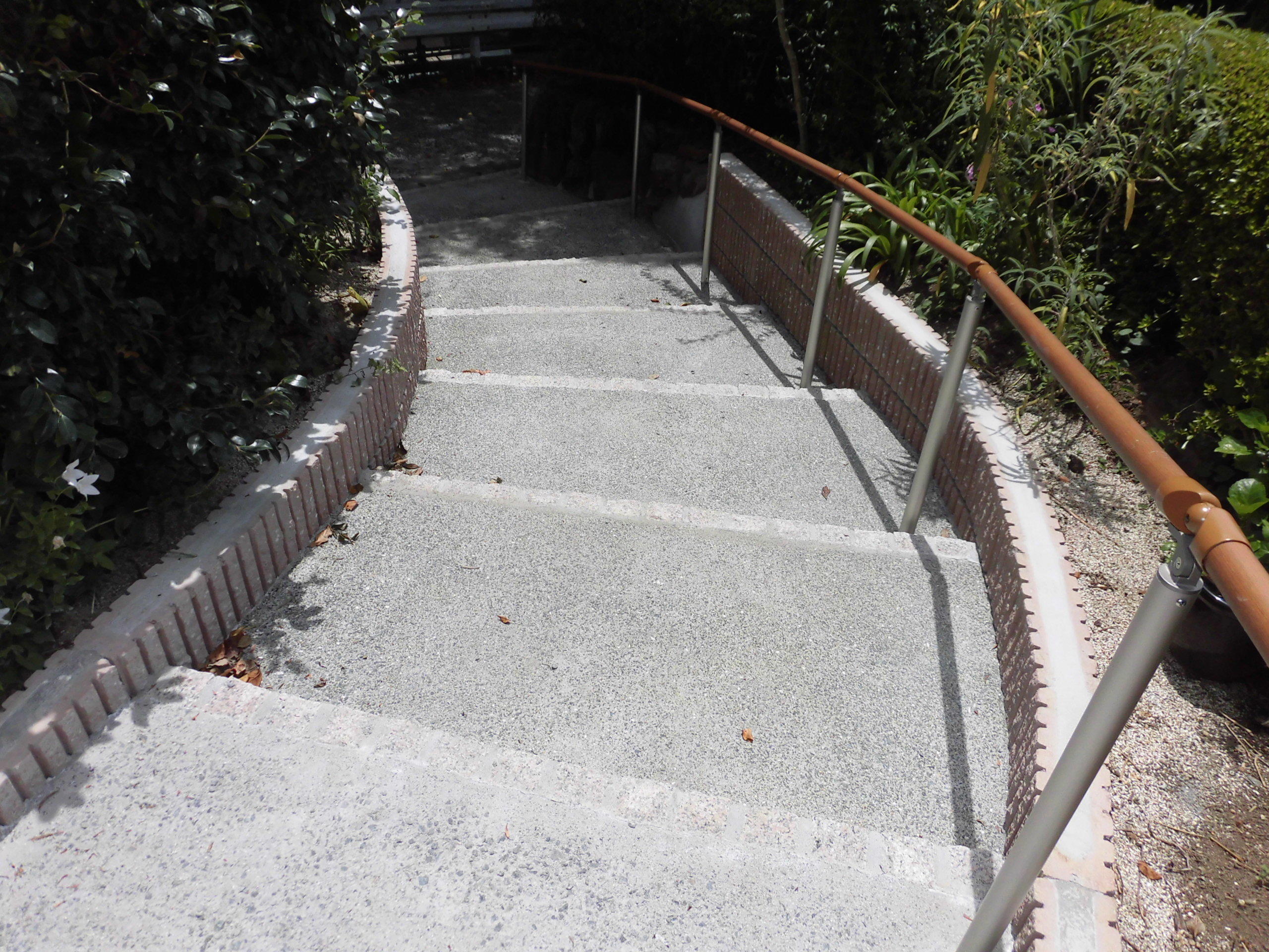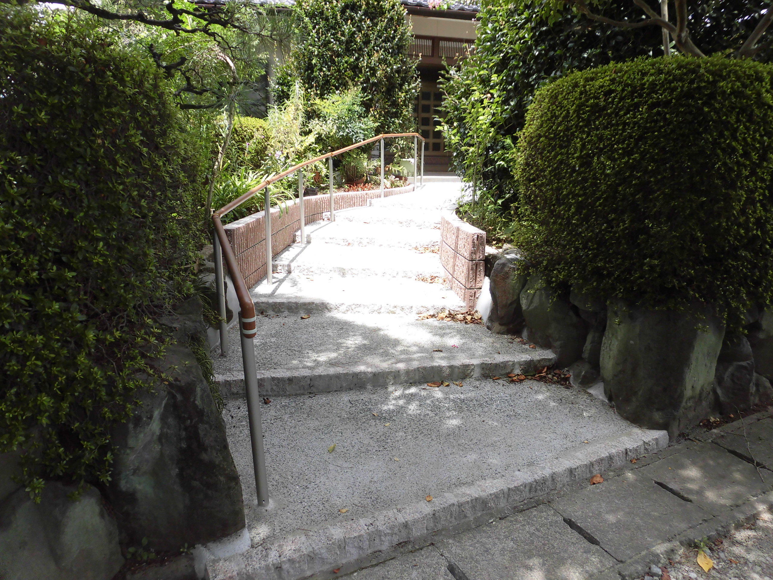 足がご不自由になられたご家族様のために、 緩やかな階段に手すりを設置したスロープを 工事させて頂きました。