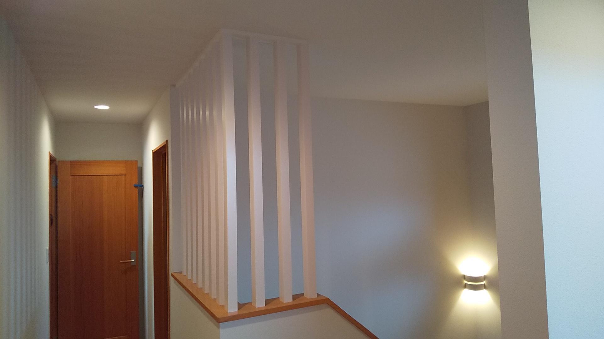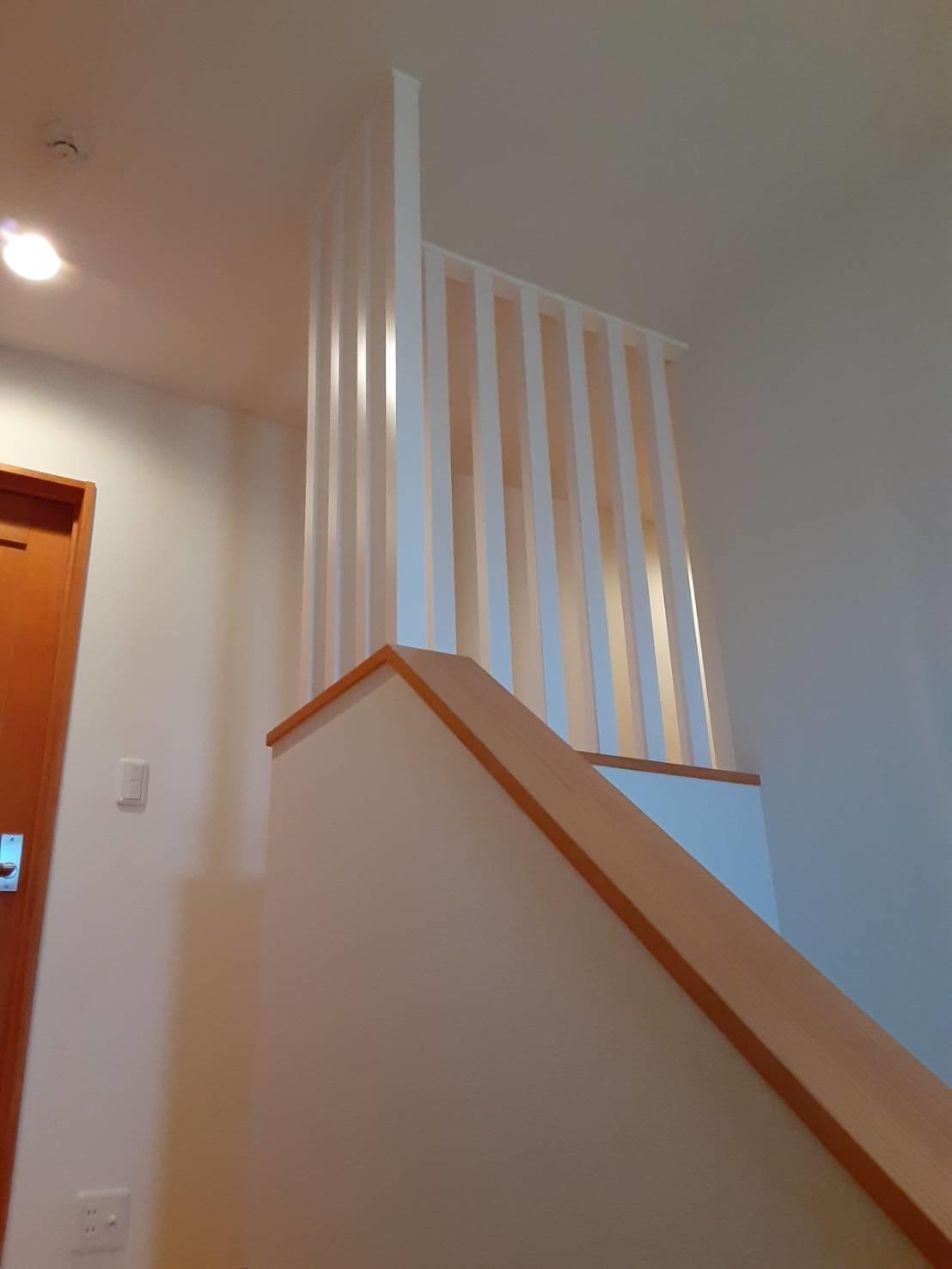 今回は既存の手すりに格子を加えました。 階段手すりは建築基準法に従って設けていますが、 子供さんへの安全を配慮し格子状の柵を追加しました! 色合いやデザインなどを お客様とお打合せを重ねて決定致しました。