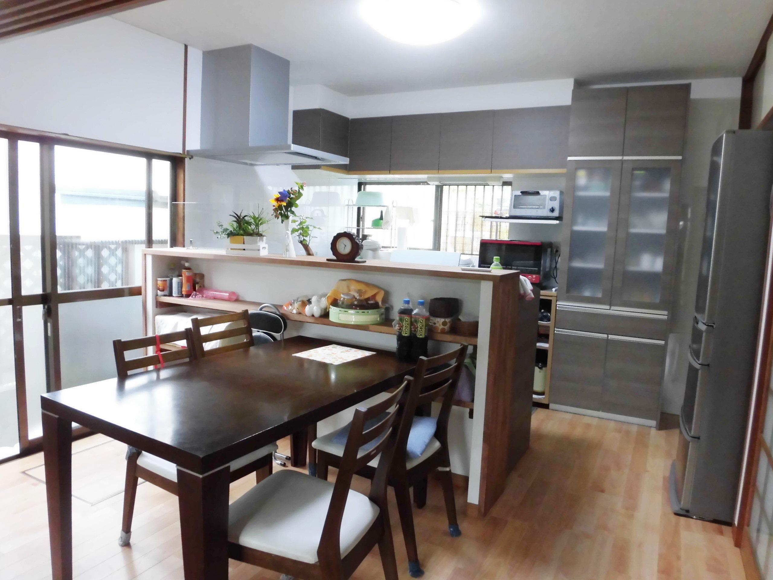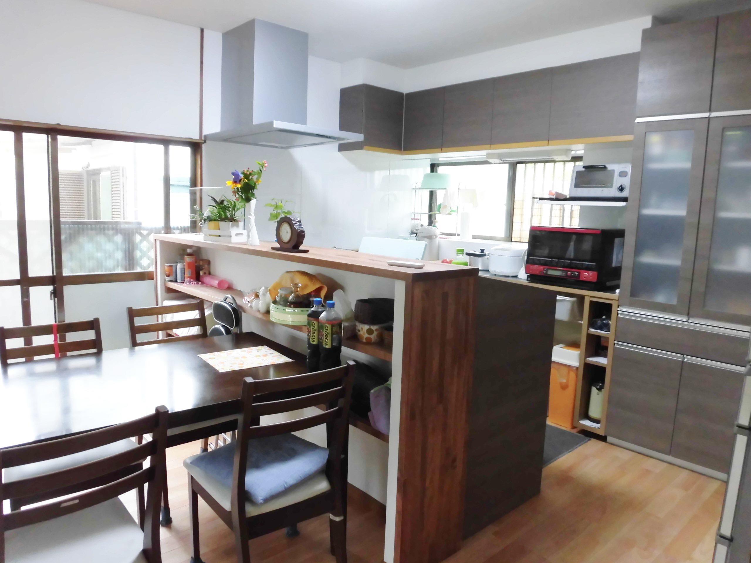 対面式のキッチンにしたことで手元隠しも兼ねて ダイニング側からの目線も気にならなくなり、収納もグンと増えました! お料理をしながらご家族との会話も増えられるかもしれませんね(^^♪
