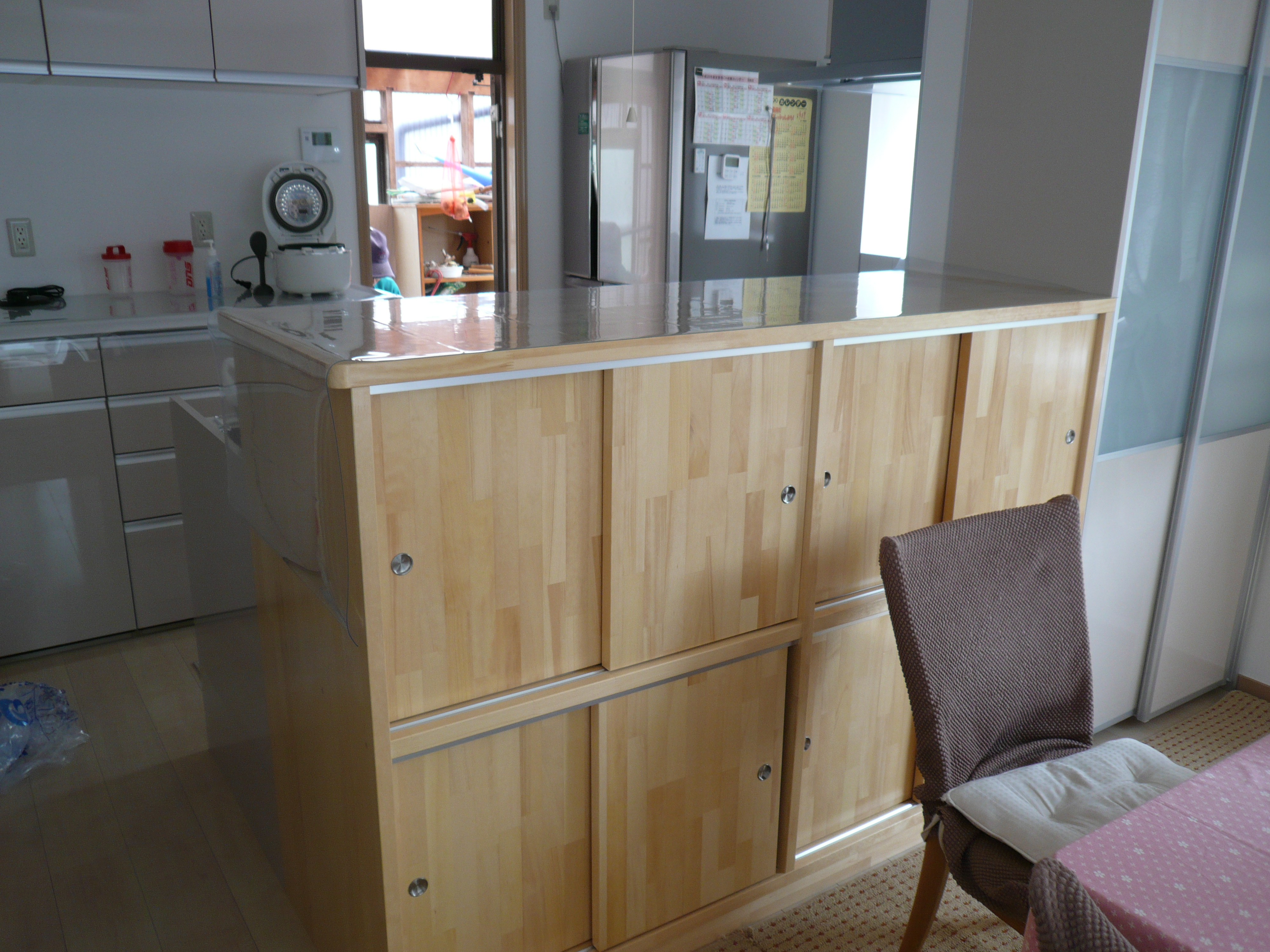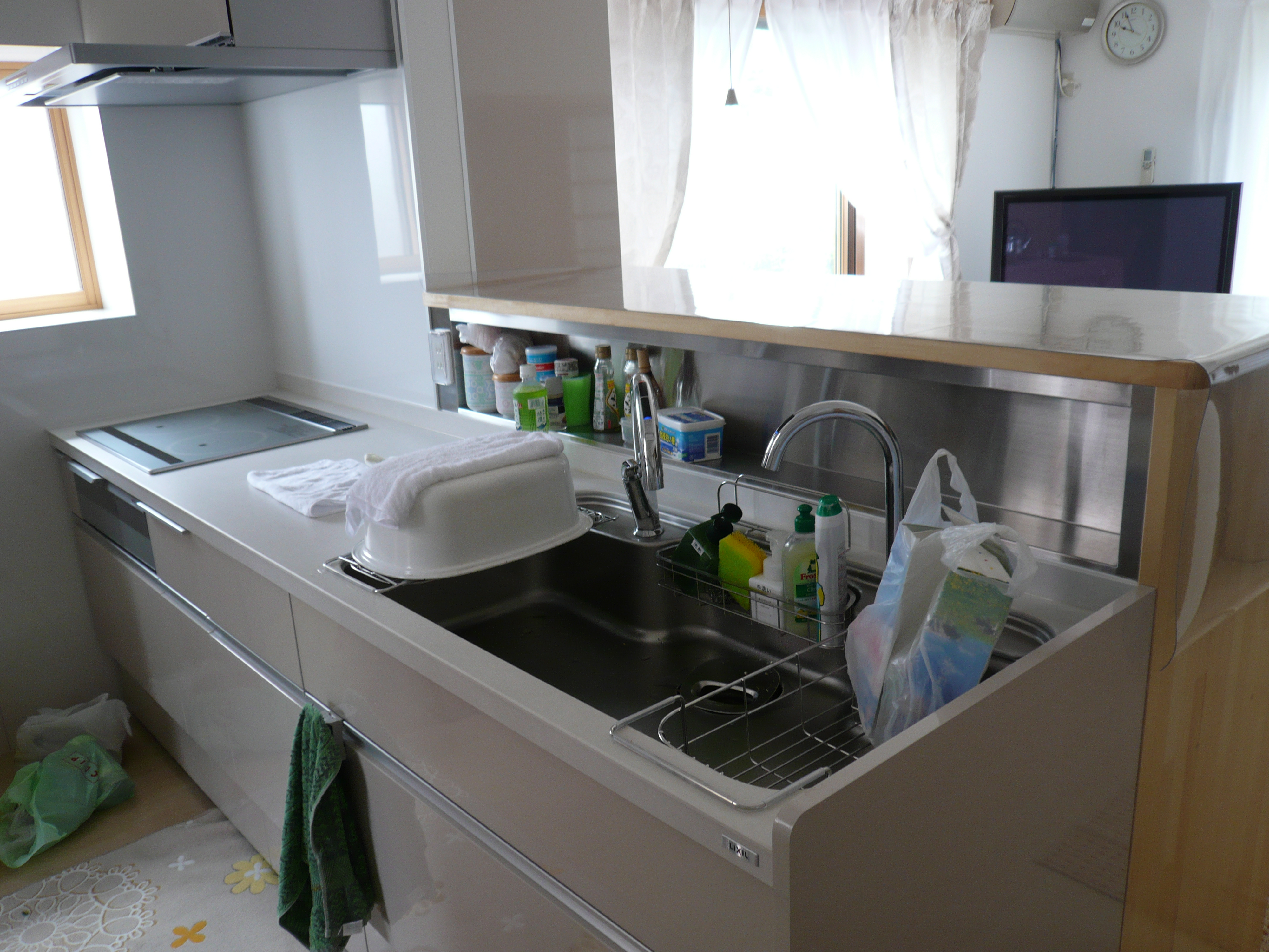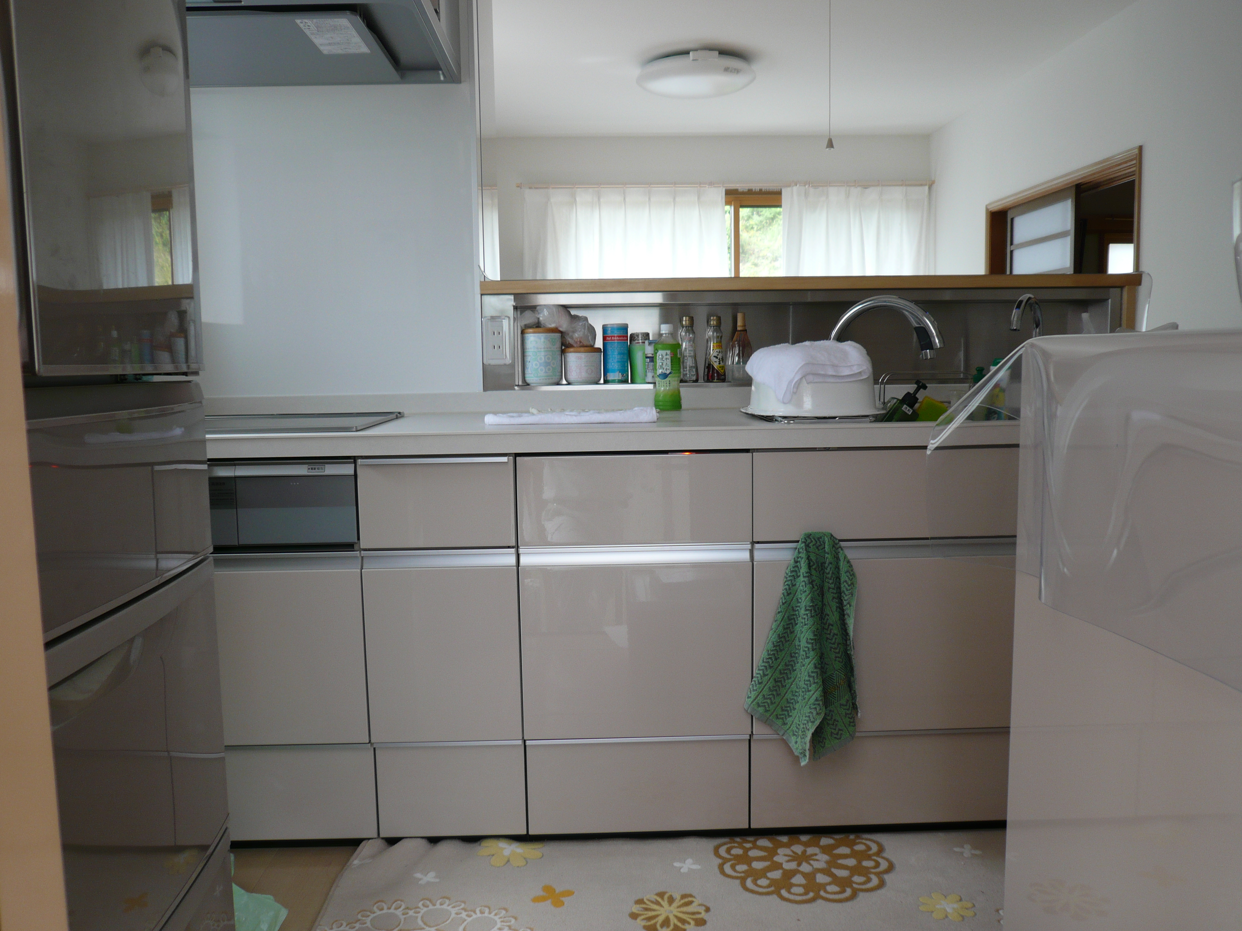 開放感があって収納もたっぷりで良かったです。オート水栓もとても便利です。 セラミックカウンターも気に入ってます。木製収納も注文どうりに奥行きの深い収納にしていただきました。