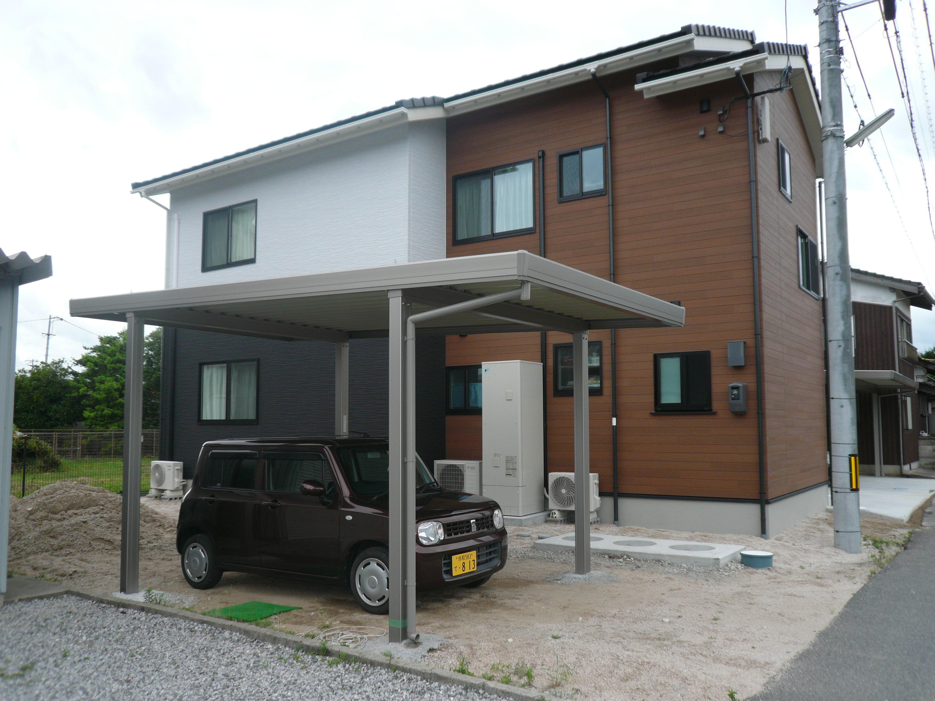 新築された2世帯住宅に積雪50センチタイプの2台用のカーポートを設置しました。