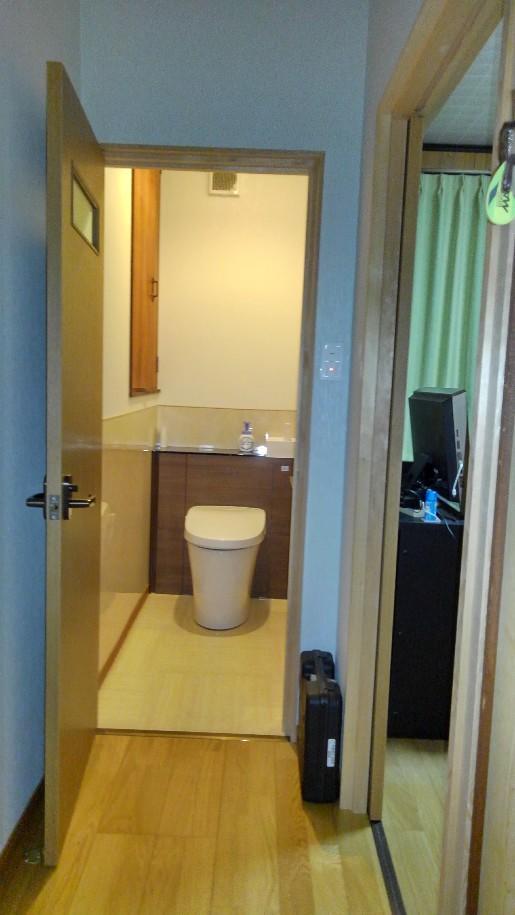 ご高齢になって、夜に1階のトイレまで降りるのが大変なので、寝室の一部を区切って、新たに2階にトイレを新設しました。LIXILのキャビネット付トイレ「リフォレ」を選んだことで工事も簡素化でき、電気配線や給排水の配管も隠せ、すっきりしたトイレになりました。