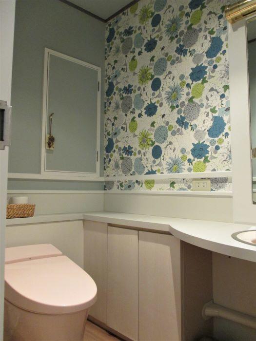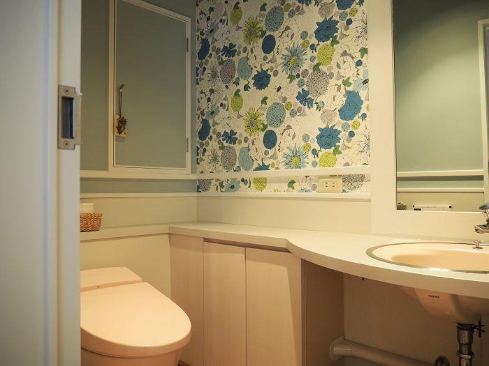 ベースの壁紙は爽やかにグレイッシュなペールブルーをあわせてコーディネートしました。