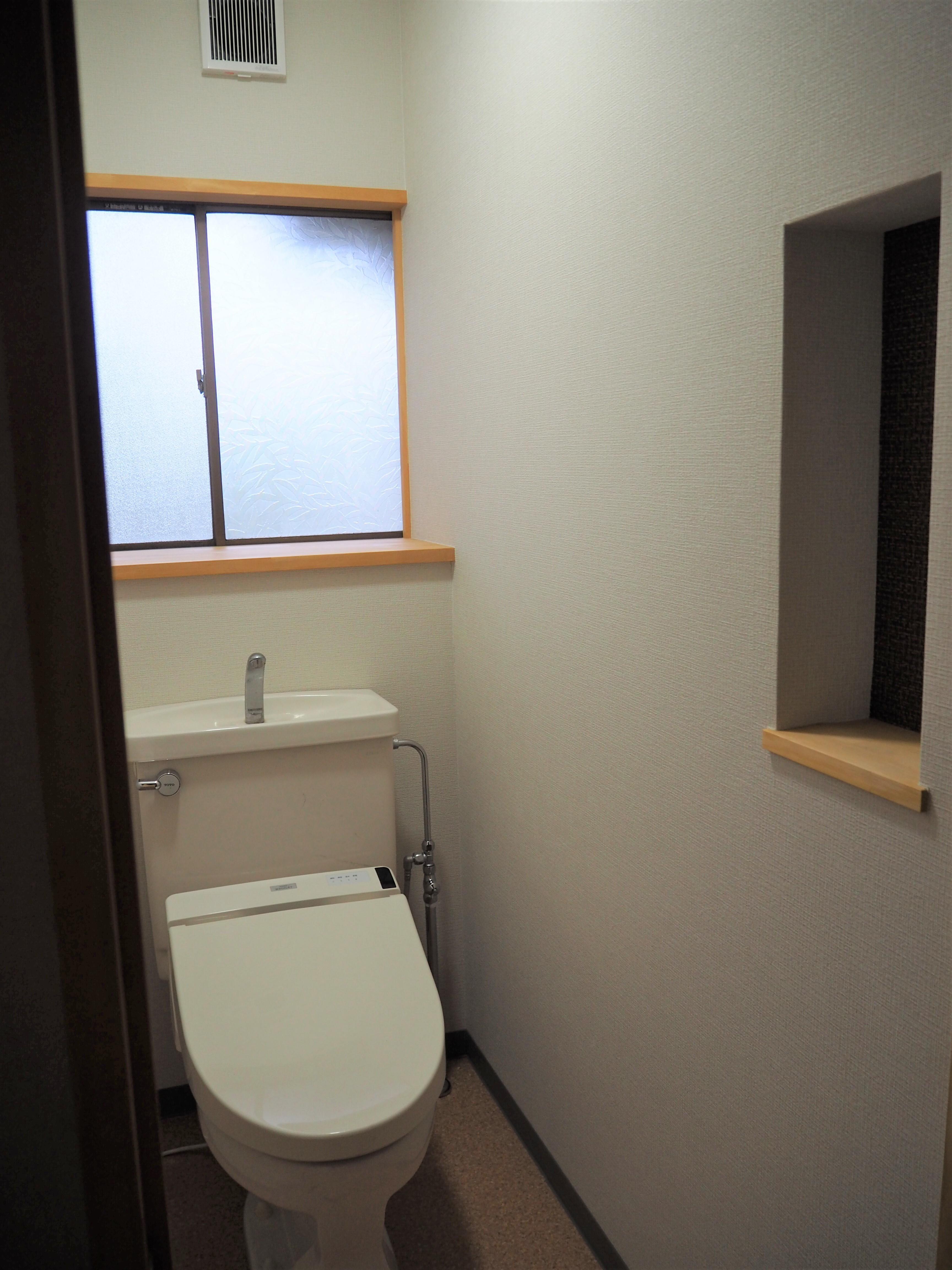トイレの壁にはニッチをつくり、小物やお花など、ちょこっと飾るスペースを設けました。