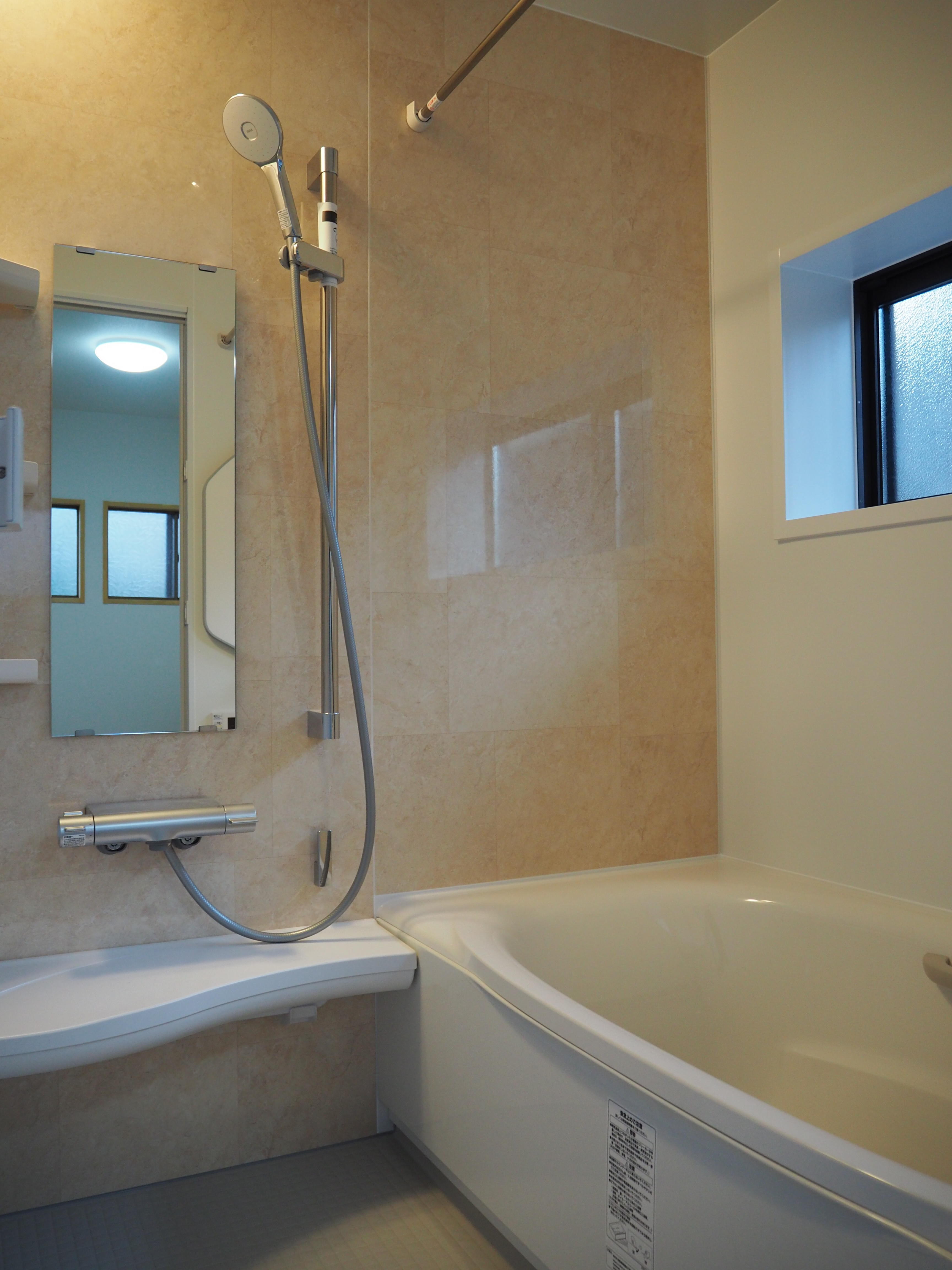 システムバスと温水器を同時に施工すれば、浴槽のお湯が冷めても追い炊きができて便利になります。