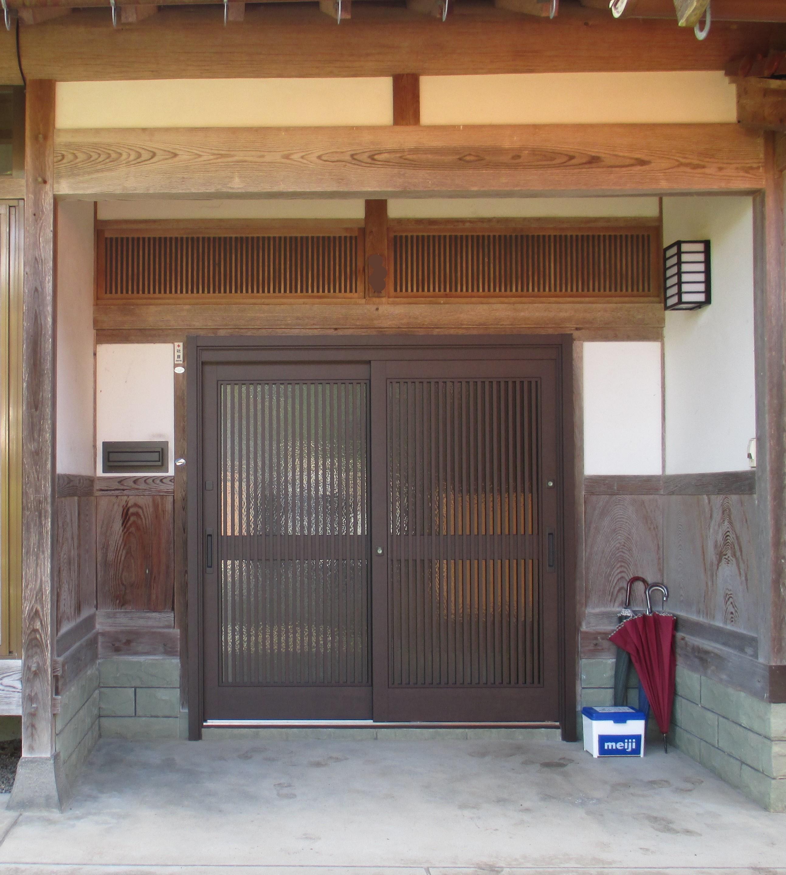家全体的な外壁塗装をさせて頂きました。 ポイントは、軒下部分や柱、梁も塗装された事です。 前回、引き戸の取替工事もされているので 特に玄関周りはお取り替えしたかのように生まれ変わりました。