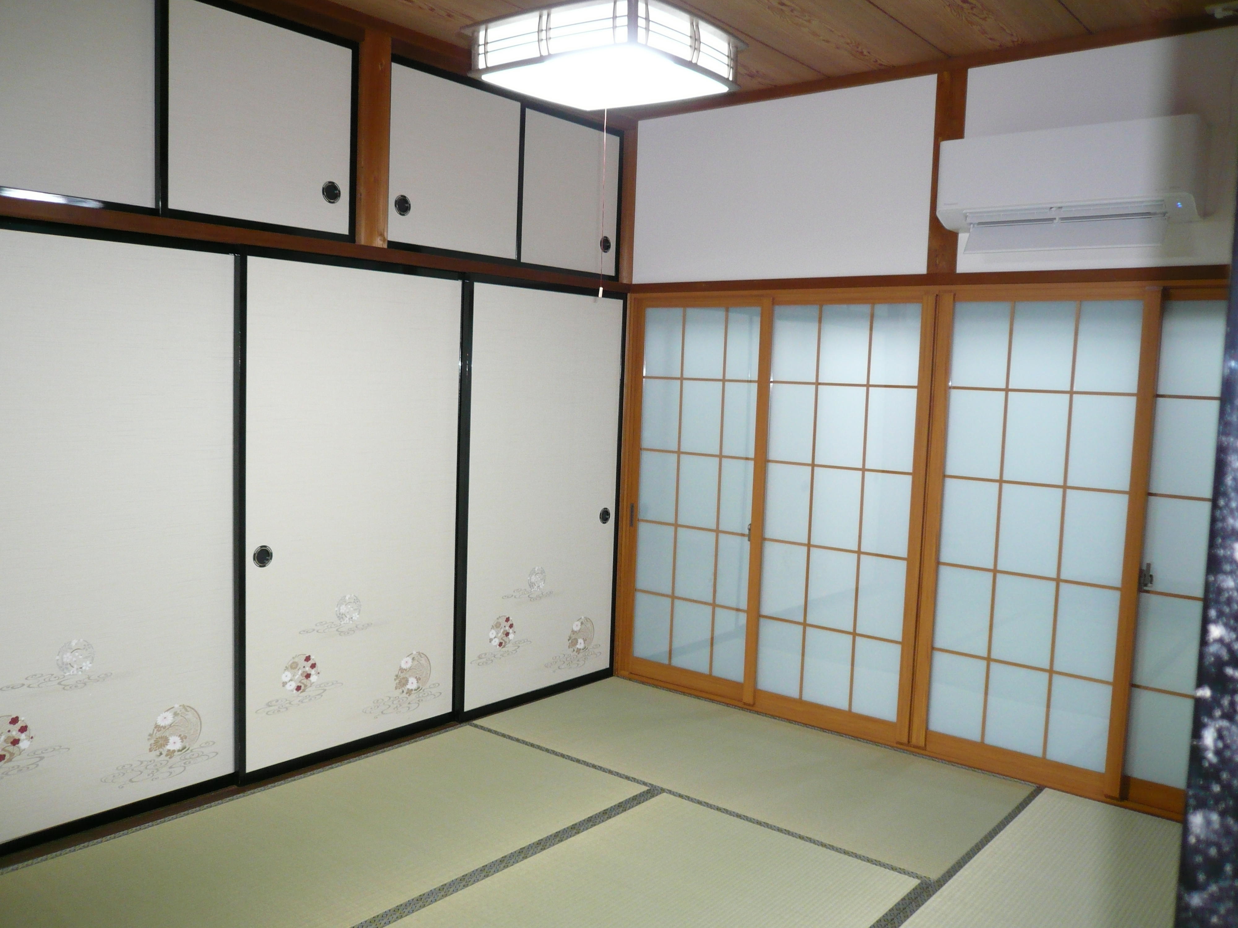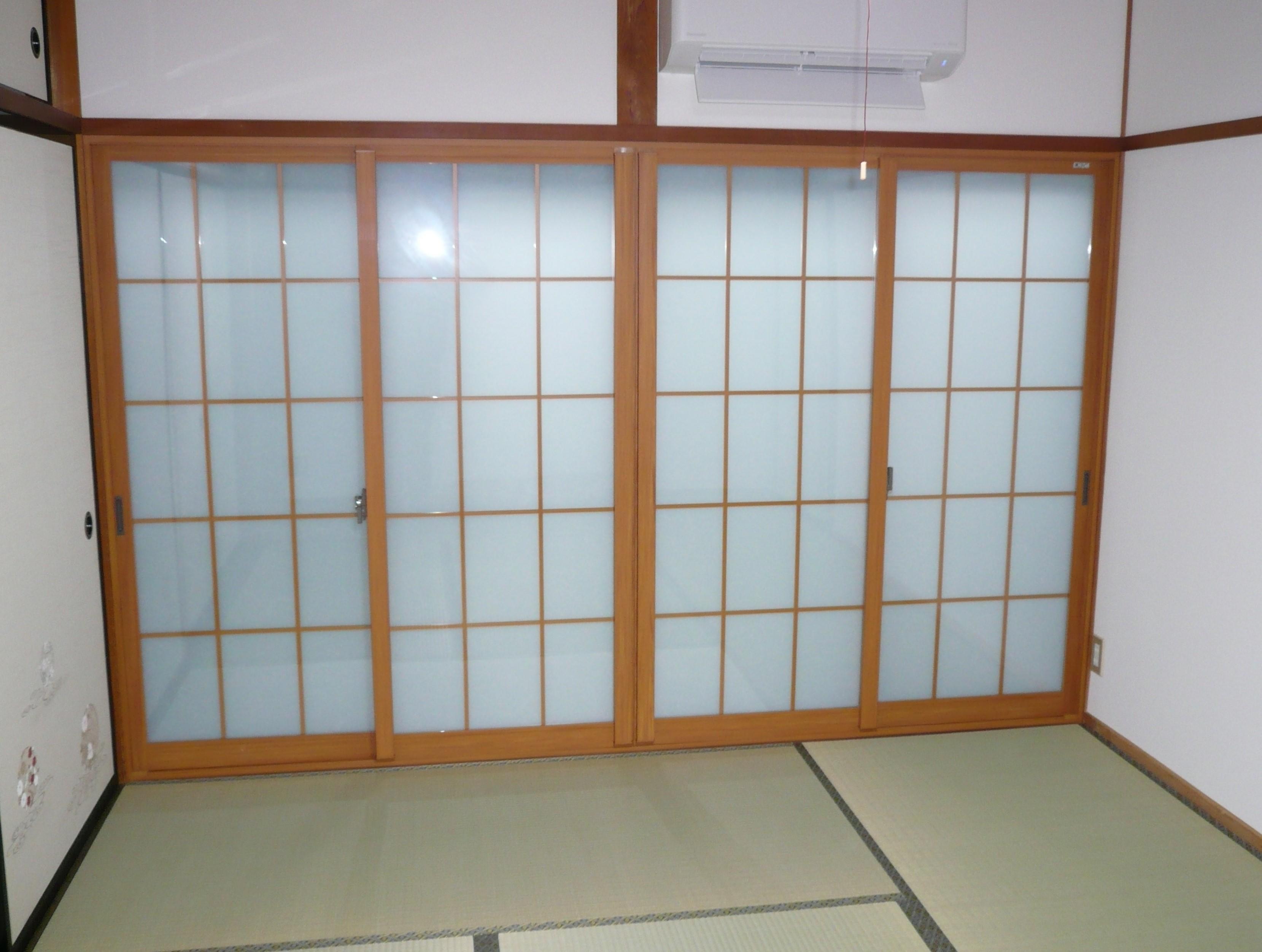 畳・襖(ふすま)・窓・クロス壁紙の和室改修工事をされました。 今回のポイントは和室にピッタリの障子タイプのインプラス(ペアガラス)にしたことです。 冬の寒さが気になっておられたため、障子よりも断熱効果の高い二重窓インプラスをご提案したところ、シングルガラスよりもさらに断熱効果の高いペアガラスをご希望され、さらに冬はあったか、夏は涼しくを実現しました。