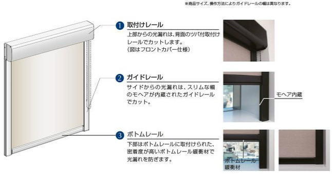 上下左右でロールスクリーンを囲むようにレールを設置することで、光がどの方向からも漏れないようにすることが出来ます。
