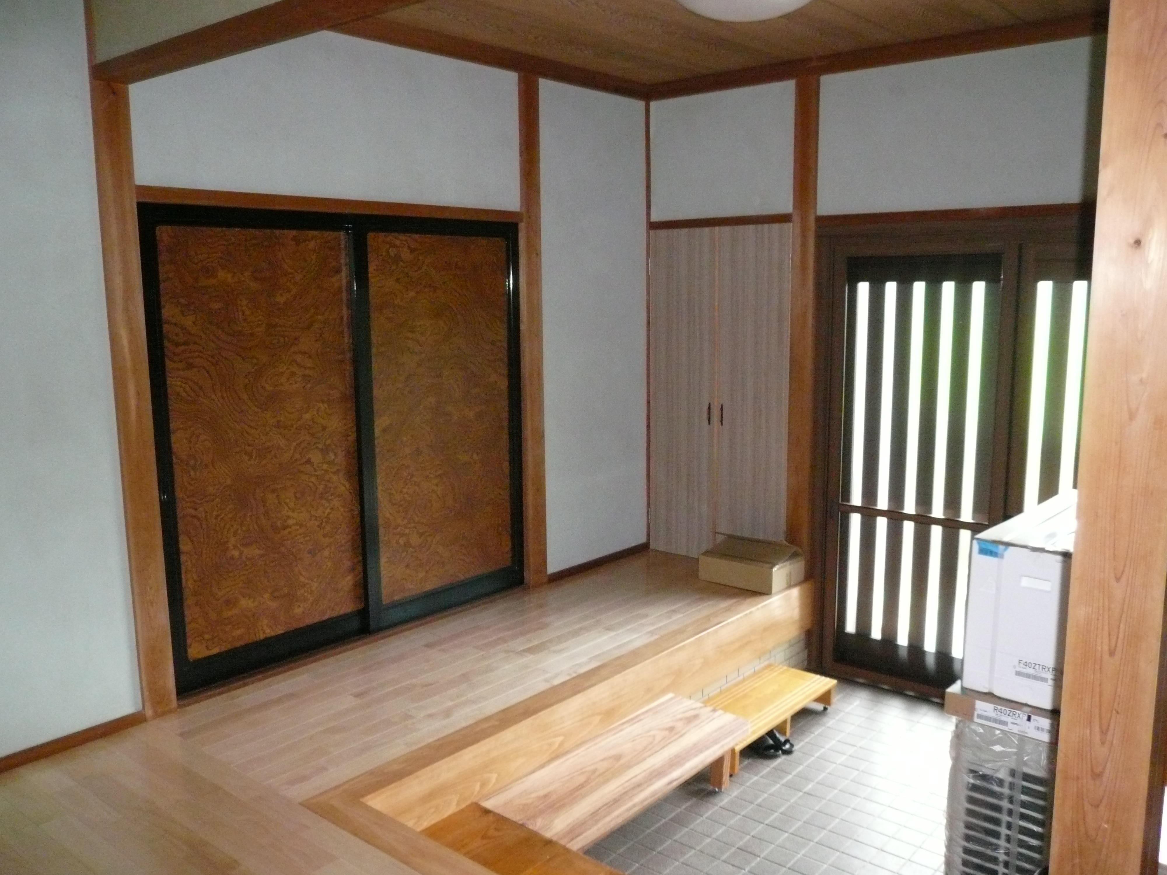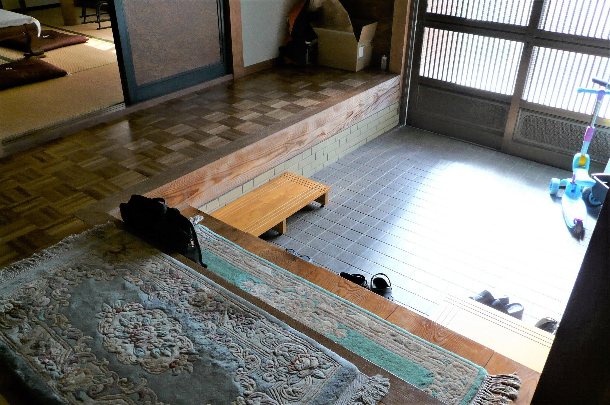 玄関内側の床のだわつきや、足が悪くなられたおばあ様の玄関上り下りがお悩みでした。
