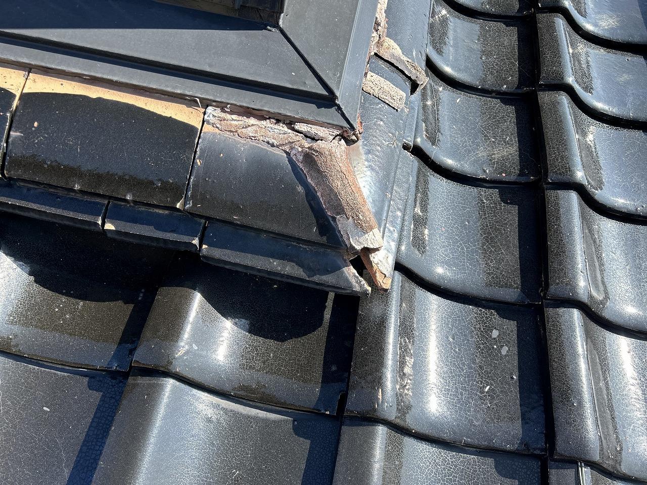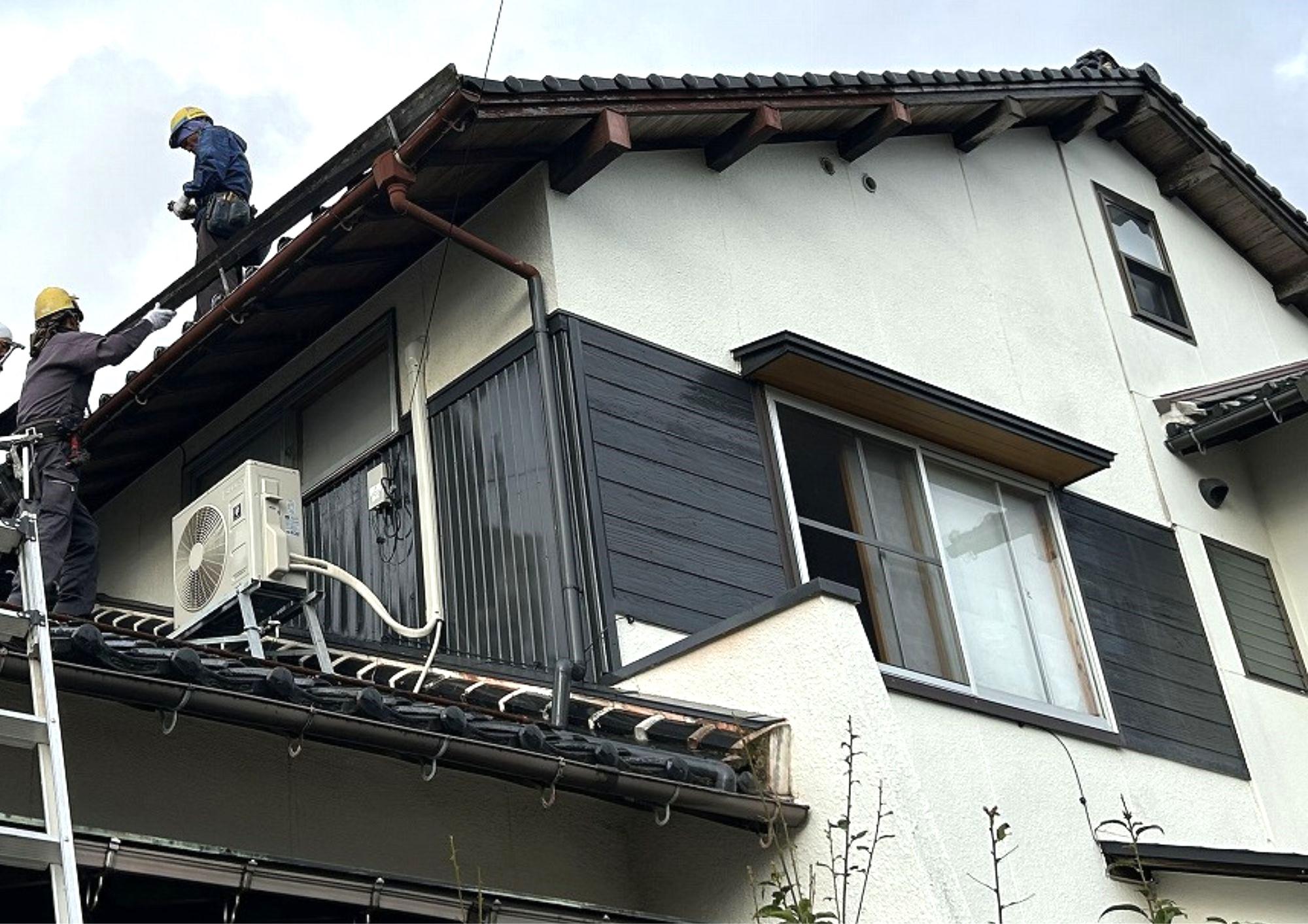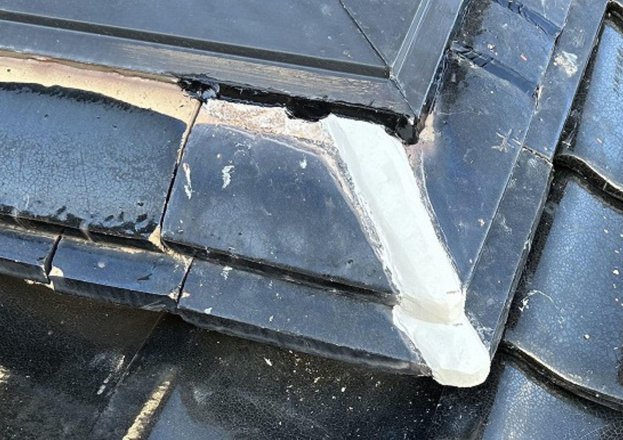 瓦の角部分が欠けてしまったため、雨水が侵入する前に直したい。 また隣地への雪ズリ防止の木板が腐食して雪に耐えられなくなると危険で修繕したいとの依頼がありました。