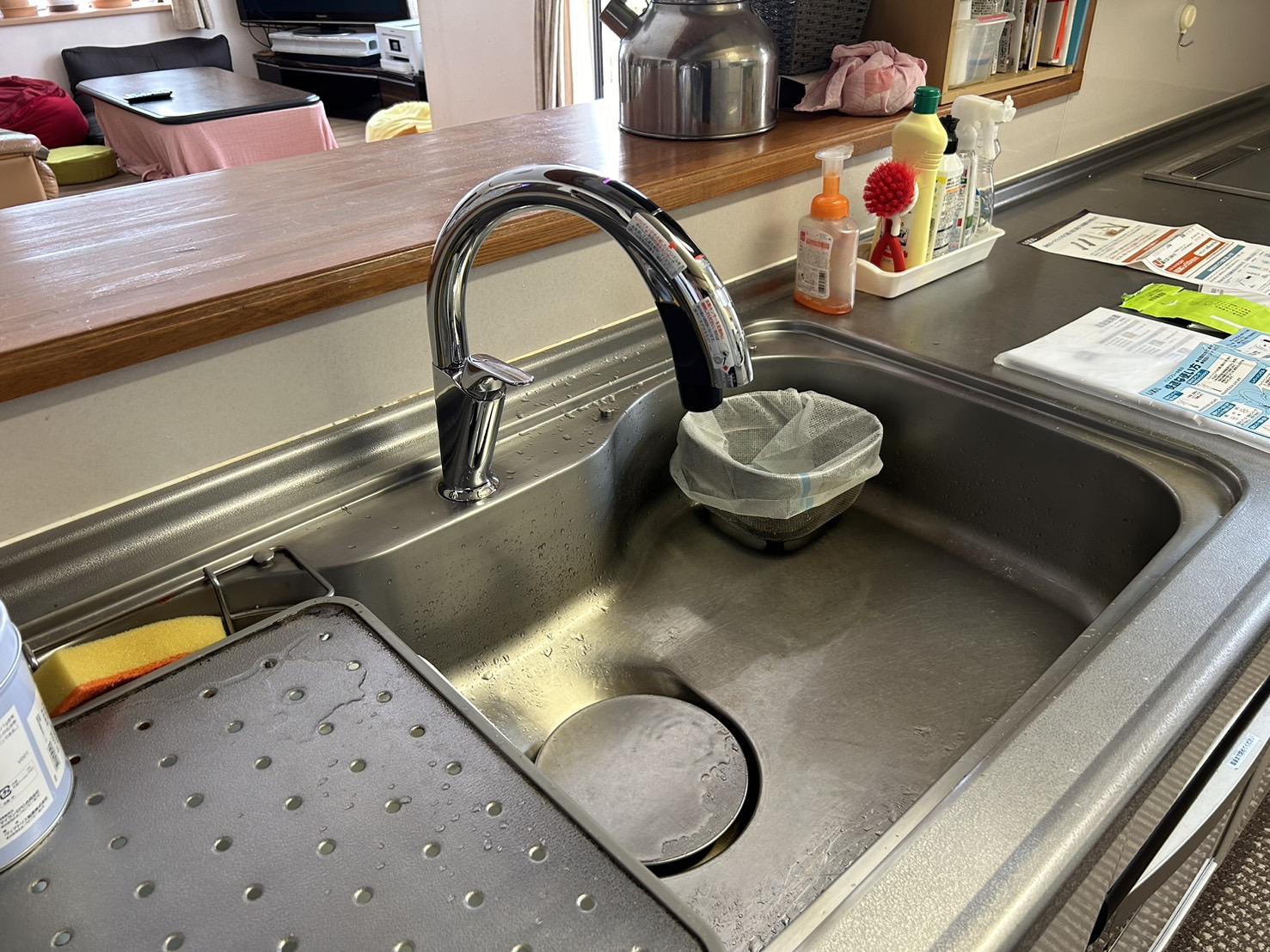 20年ほど使っているキッチンの蛇口が古くなり、レバーが緩く水のキレが悪くなったので水栓を最新のものに変えるご提案をしました。