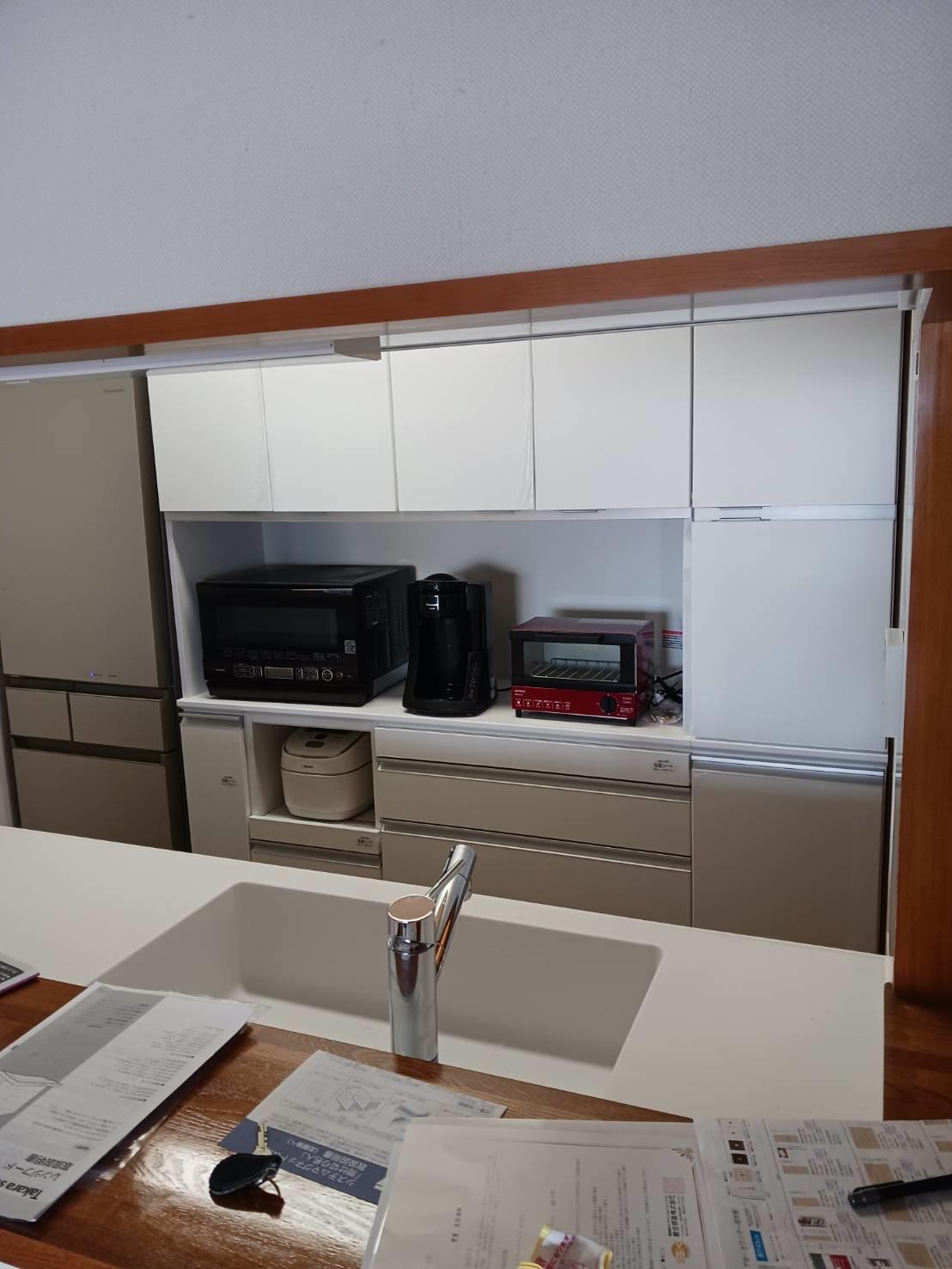 施主様より、【食器棚の中身が見えないように】【家電が置けるように】とのご依頼がありました。