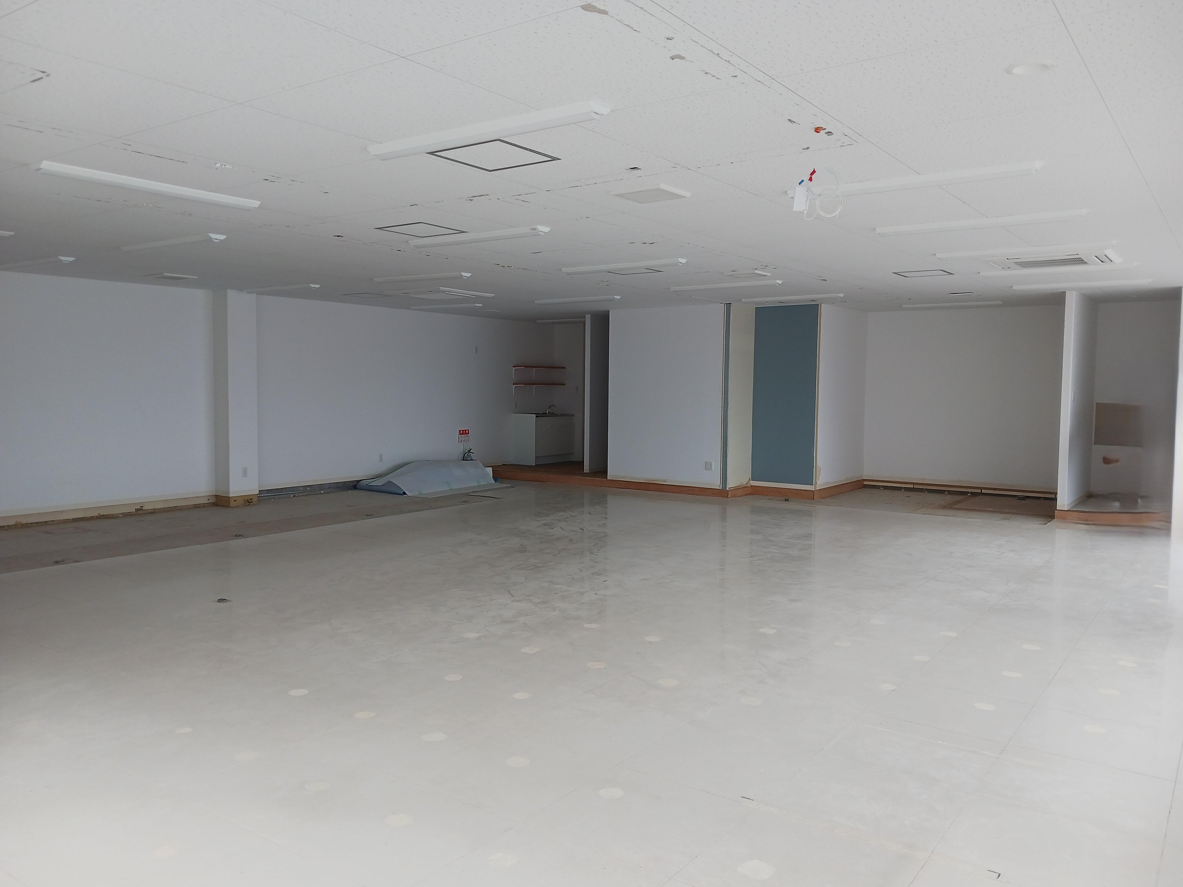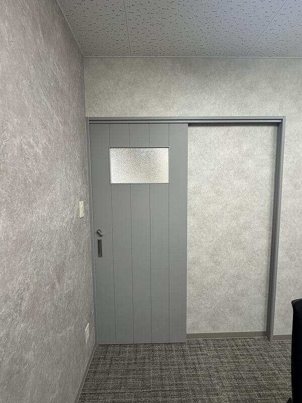 元々広いコンビニ跡だった空間を、用途に合わせて間仕切りし、使いやすい事務所へとリニューアルしました。