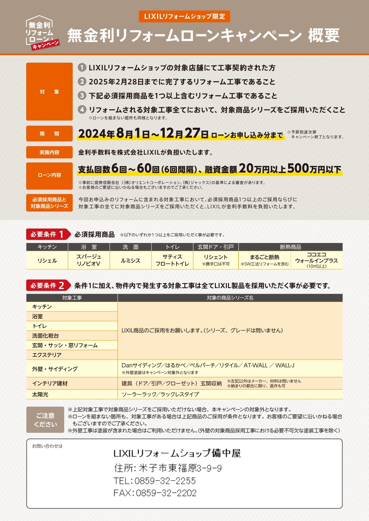 <今がチャンス>金利0%でリフォームできる無金利ローンキャンペーンのご案内です。