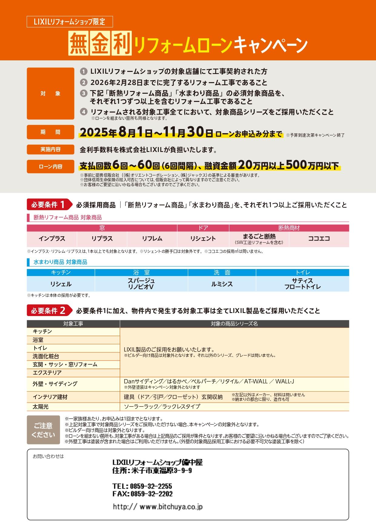 LIXILリフォームショップ限定、無金利リフォームローンキャンペーンのご案内です!