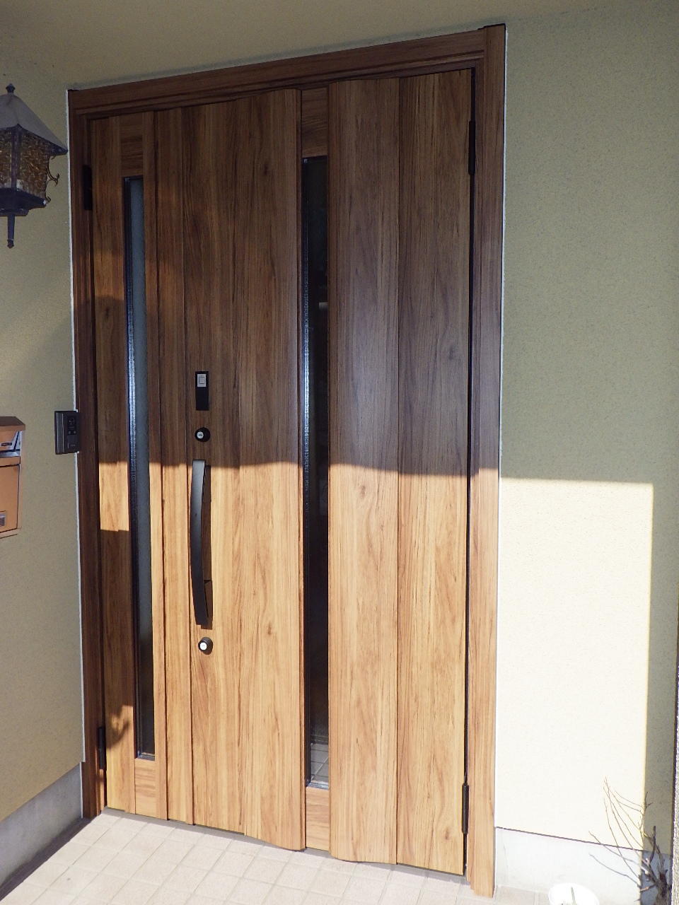 リフォーム玄関ドア「リシェント」で、古い玄関ドアもわずか1日で工事完了しました。 住まいの顔がステキに変身です! 優れた断熱性能で玄関から暮らしが快適になります。