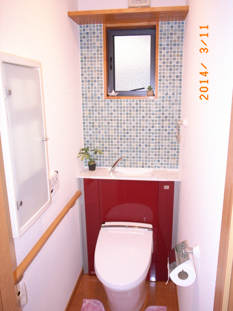お店にあるようなタイルを壁面に貼り付け明るい雰囲気を造りました