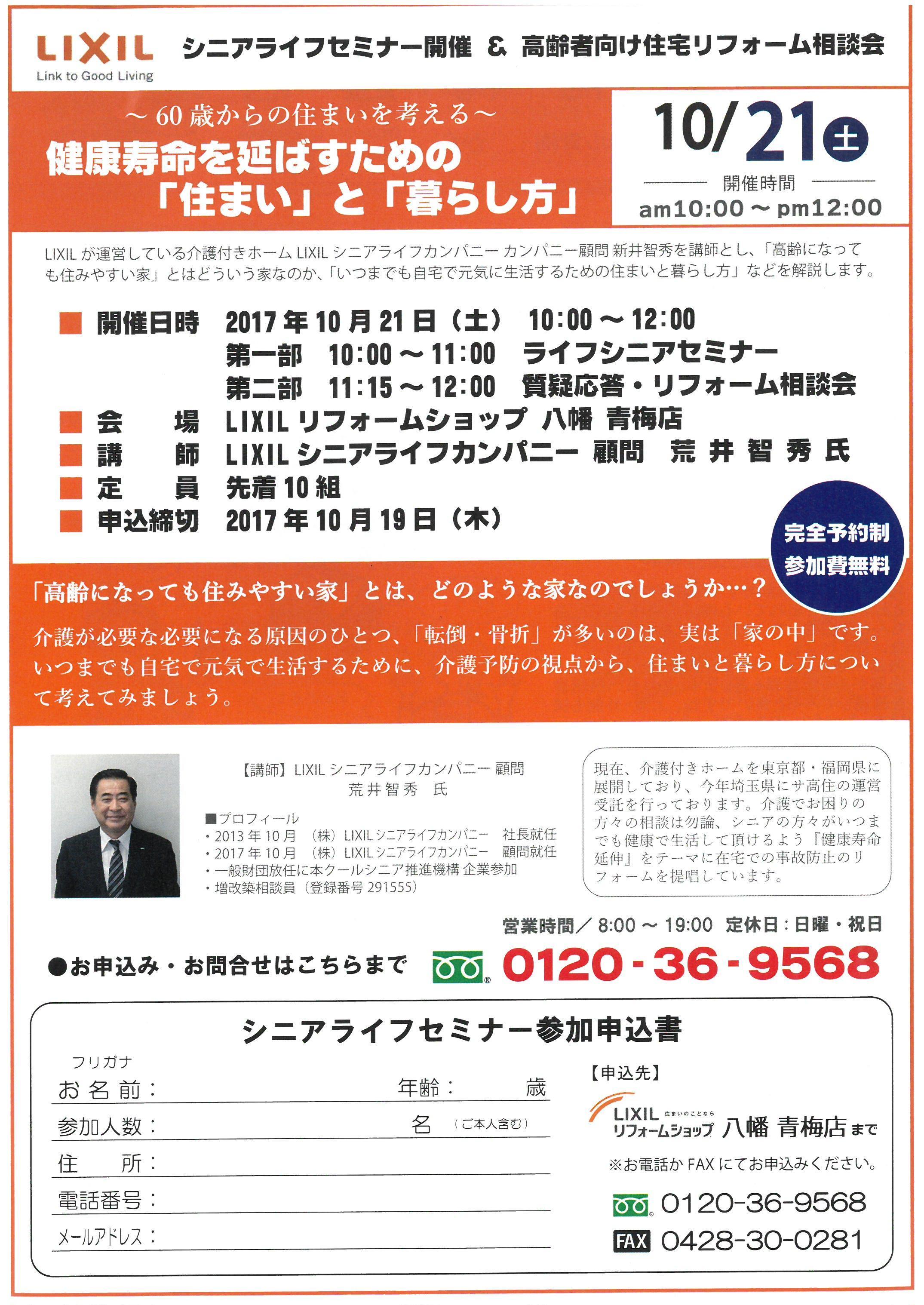 2017年10月21日(土)シニアセミナー開催&高齢者向け住宅リフォーム相談会開催(終了しました)