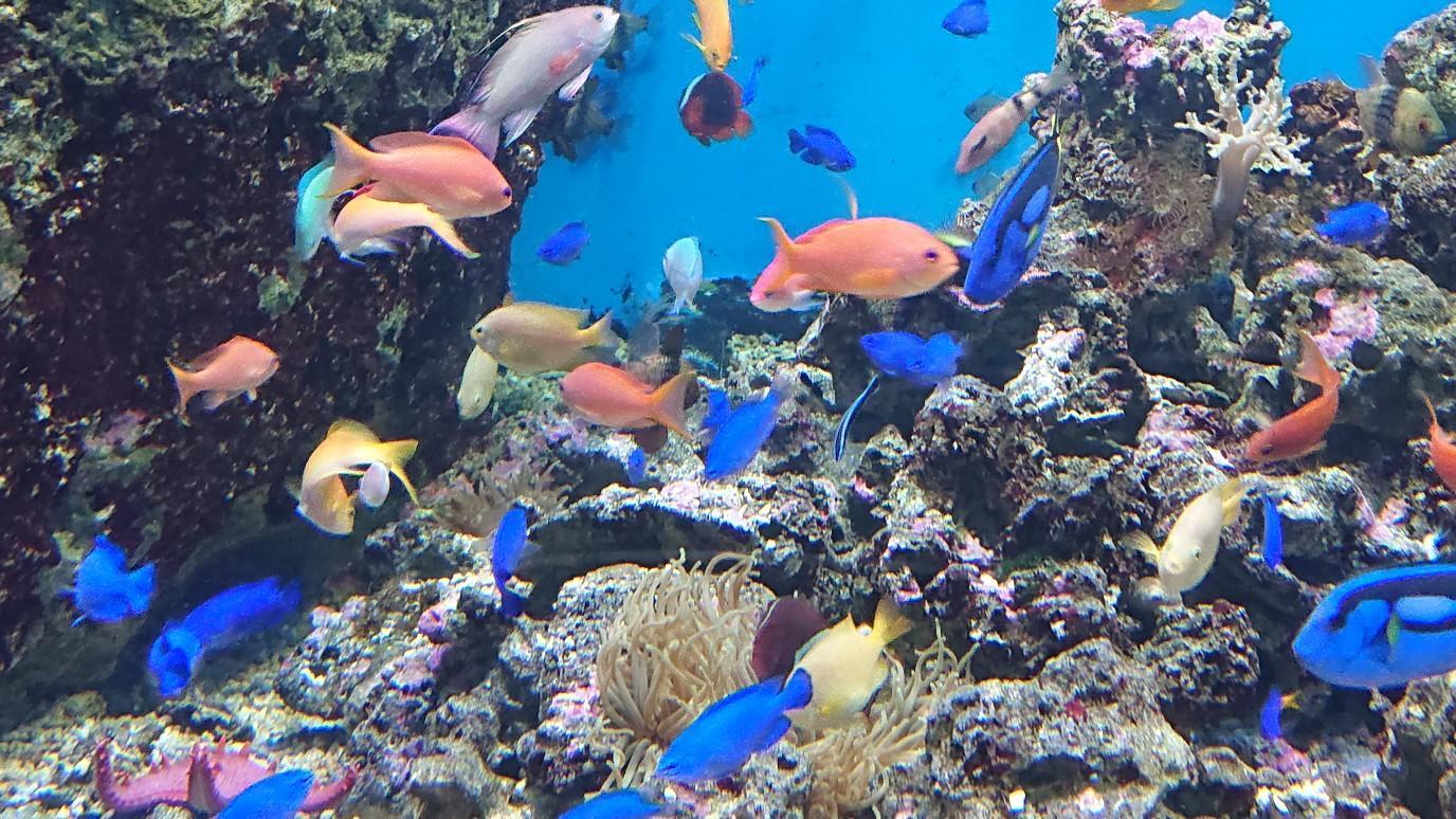 巨大な水槽のイワシトルネード!いつまでも見ていたい・・・