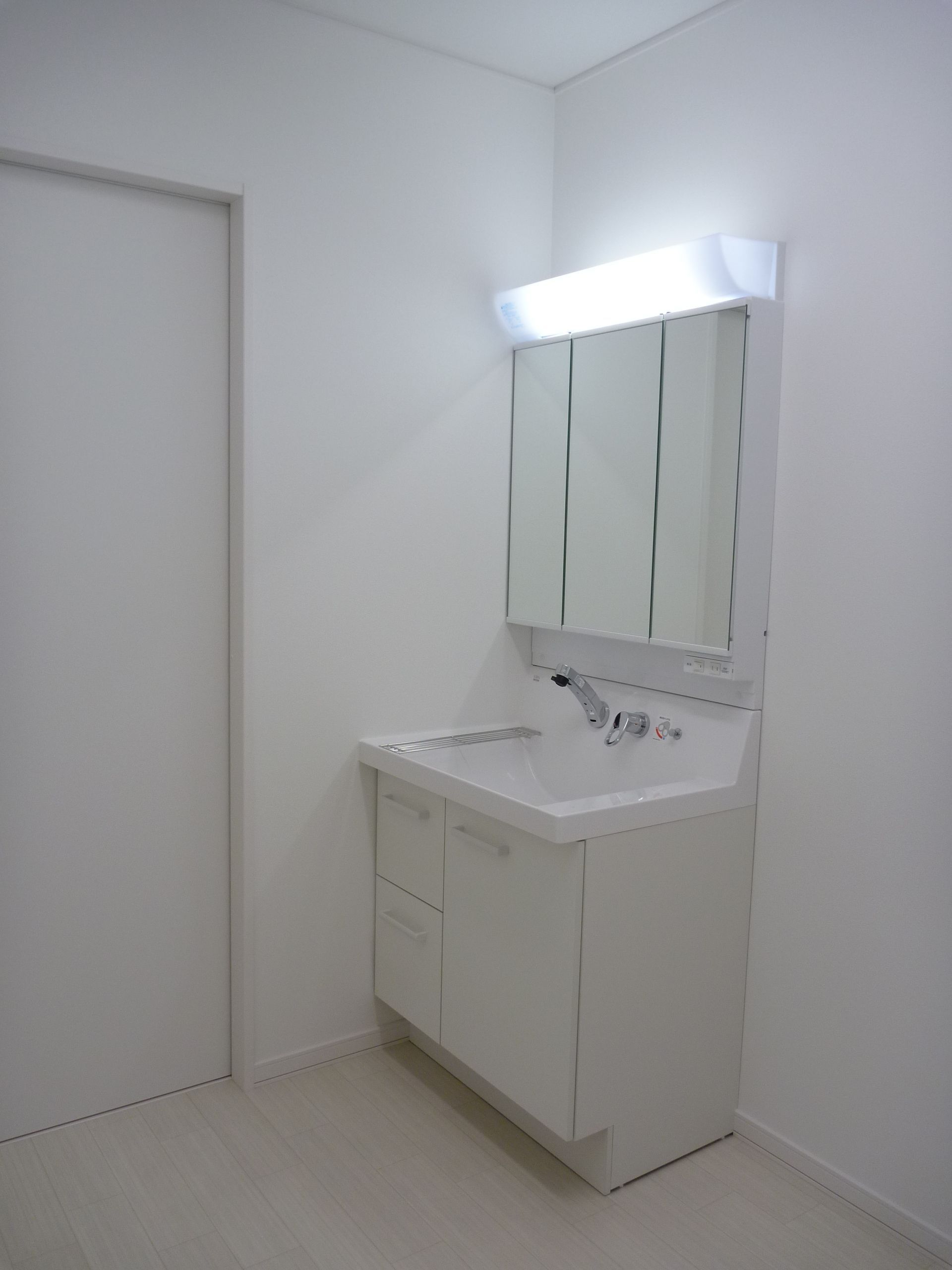 ホワイトでまとめた、とても爽やかな洗面室になりました。